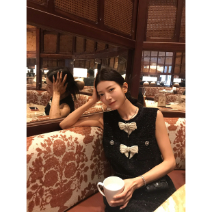 牙套大汪 超气质千金风编织银丝小香背心连衣裙 千金蝶影