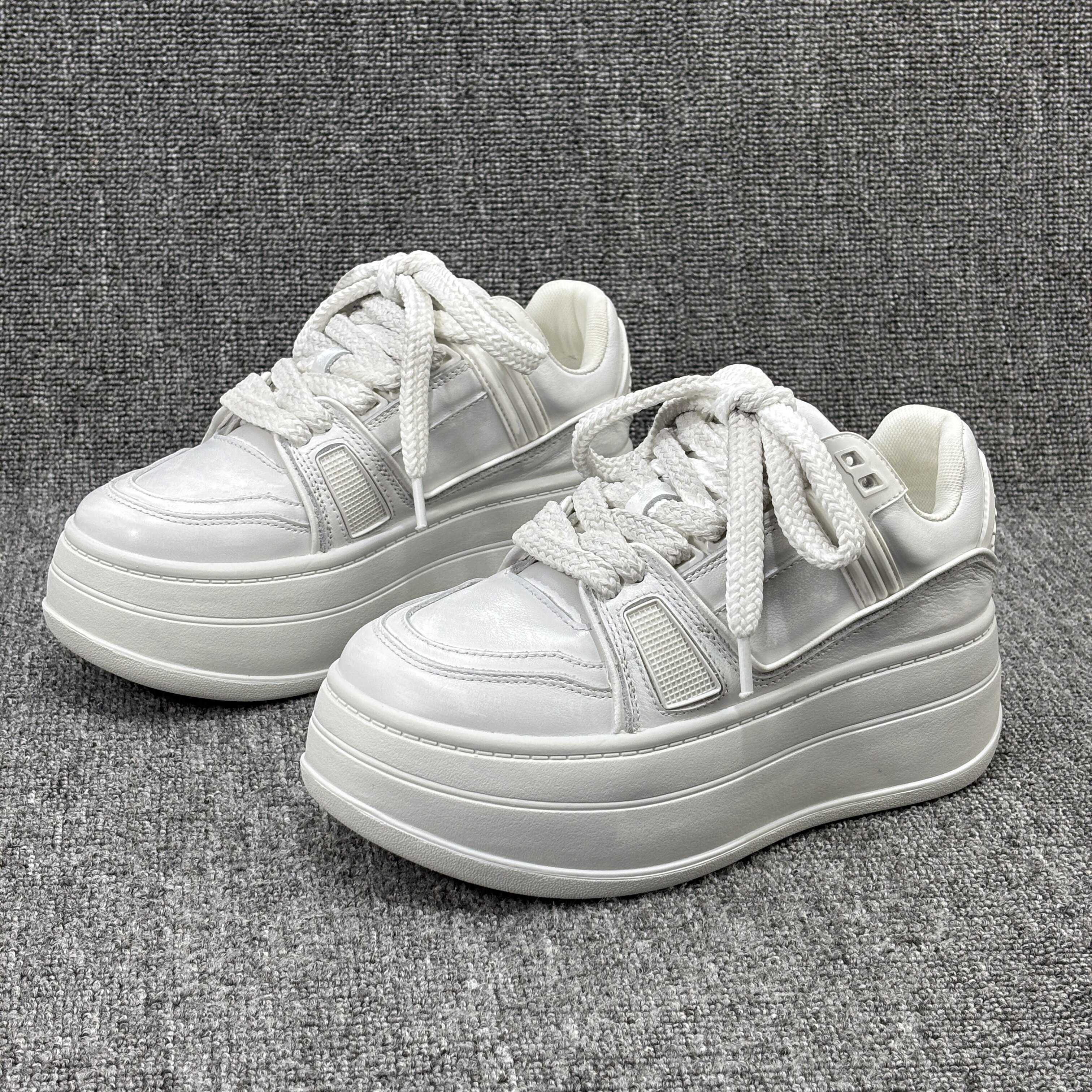 真皮小白鞋 增高做旧脏脏鞋 女欧货 厚底松糕休闲板鞋 欧洲站2026新款