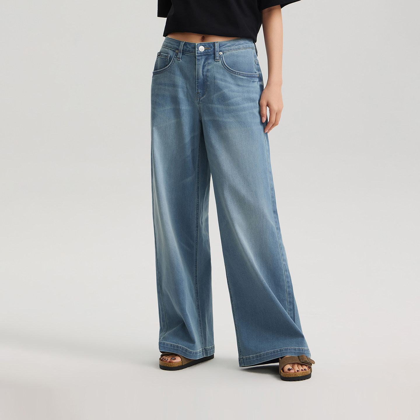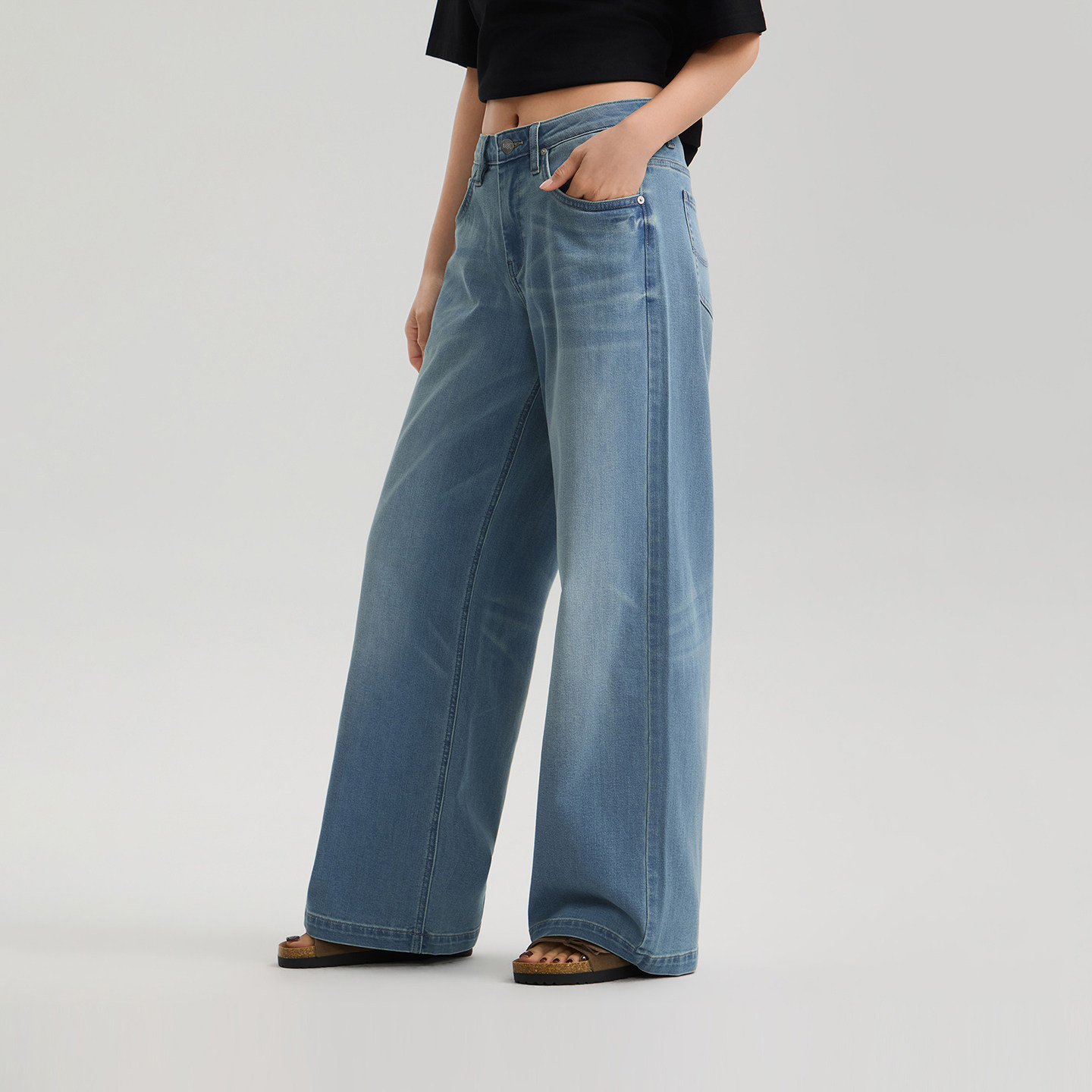 女中浅蓝凉感凉凉裤 Lee26春夏新430超A阔腿牛仔裤 张凌赫代言