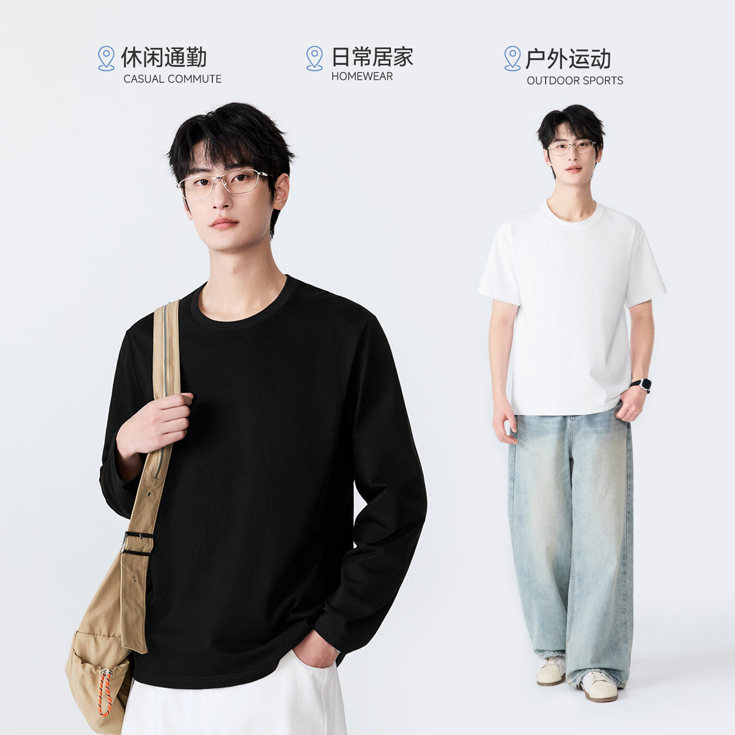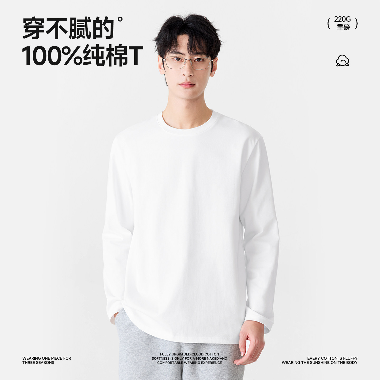 t恤男春季 白色打底衫 纯白正肩男士 男款 内搭短袖 名创优品纯棉长袖