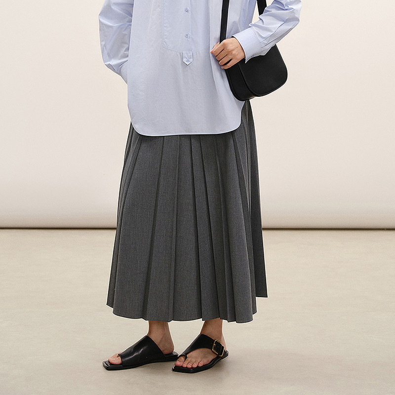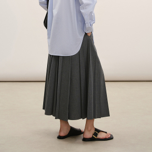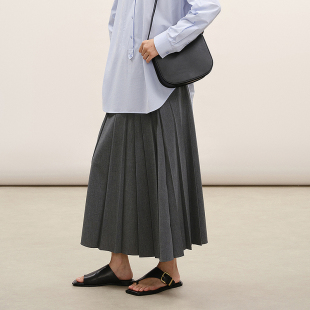 LESS2026春新款 精工系列 灰色百褶半身裙2Q2D10210 商场同款