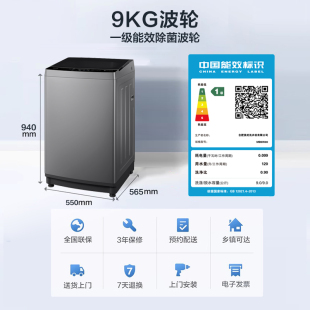 美 洗衣机9kg全自动家用租房抗菌除螨洗脱一体波轮
