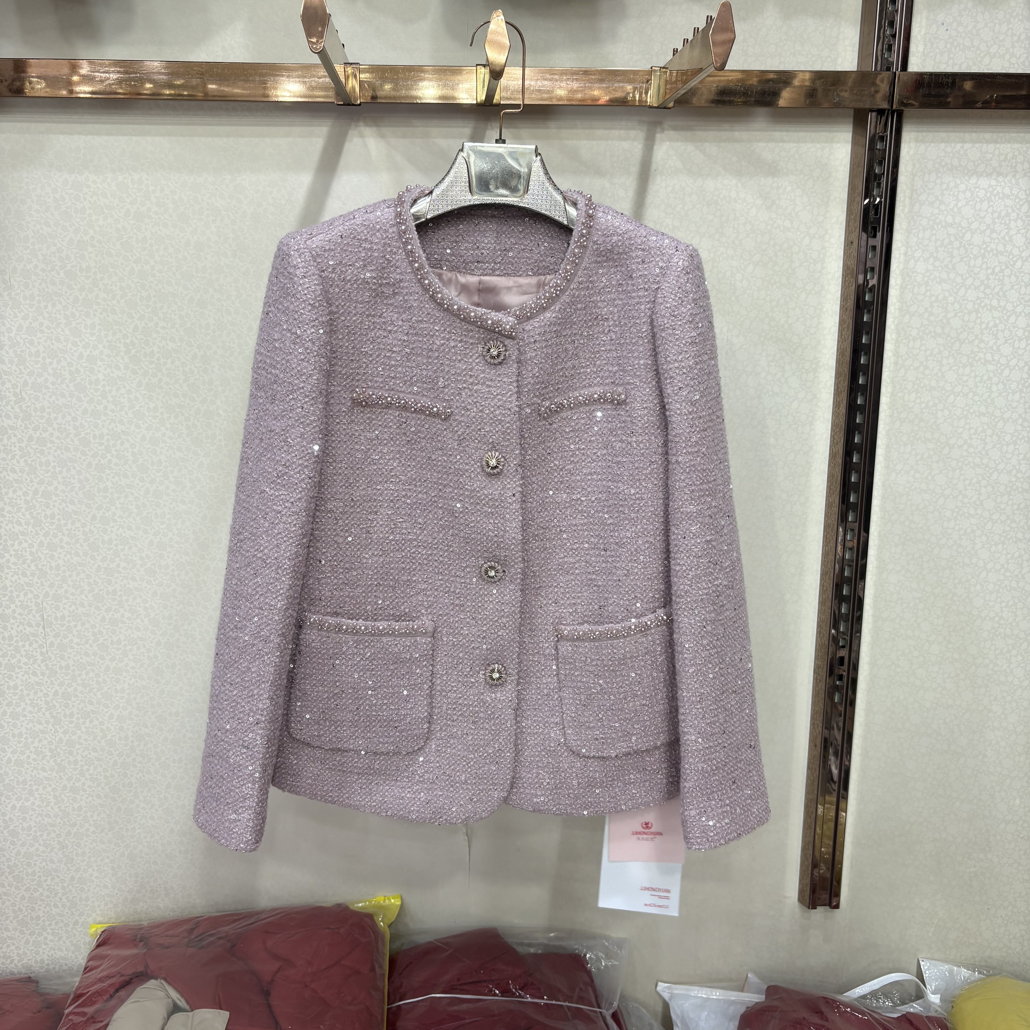 新高级感圆领显瘦钉珠设计感单排扣上衣外套女 25春季 商场同款 26A