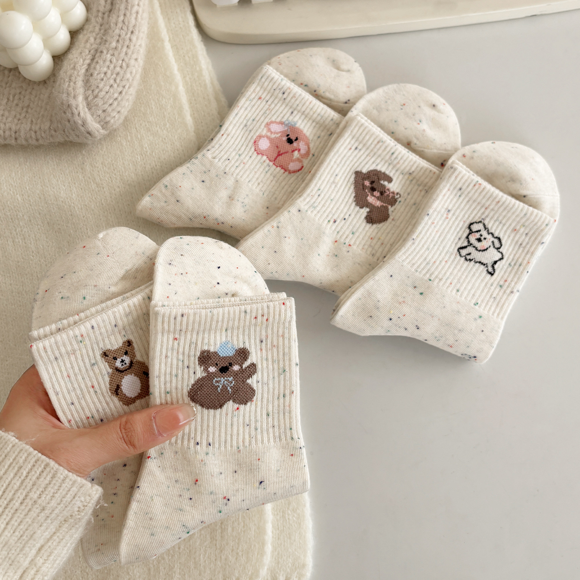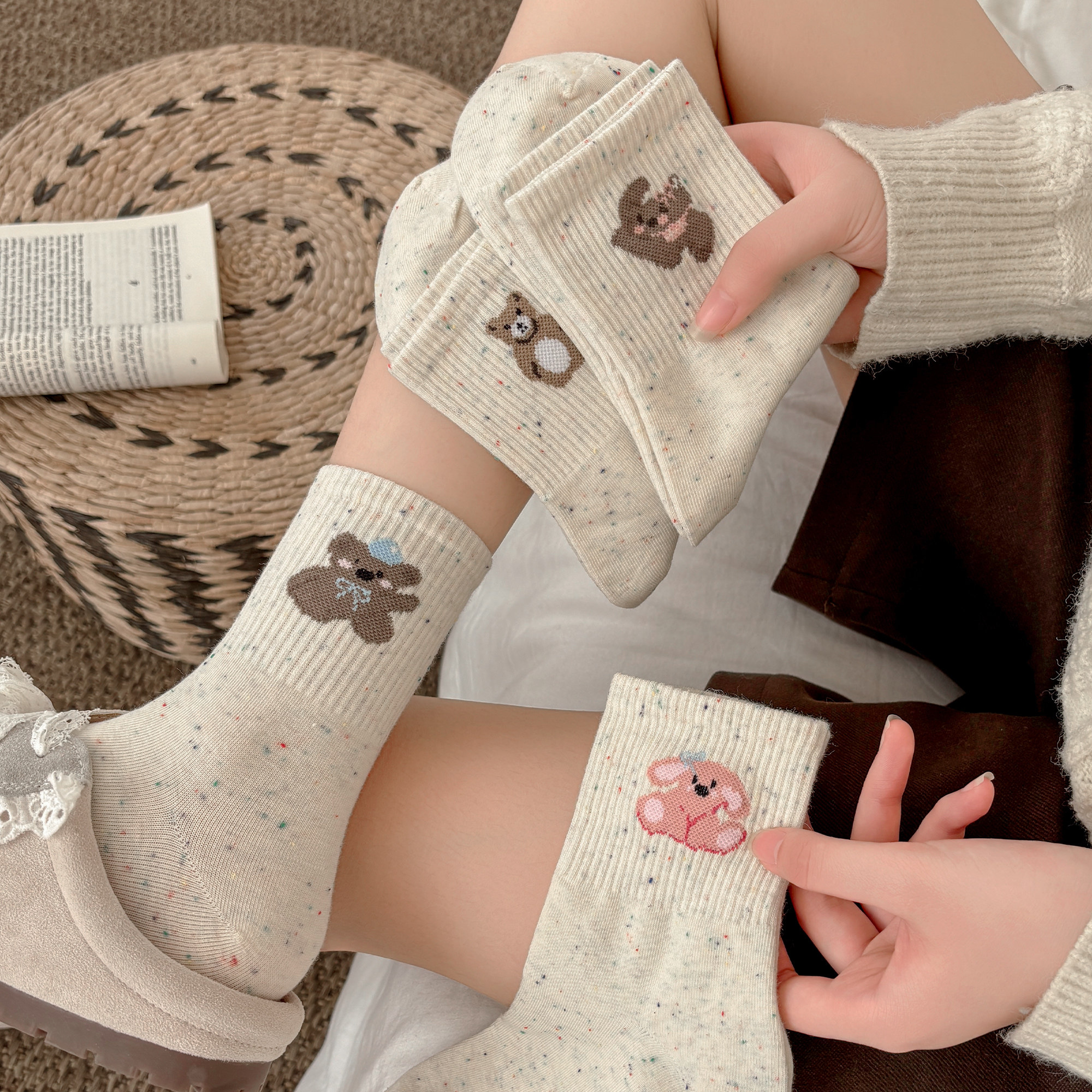 可爱夏季 纯棉防臭中筒袜点子纱小熊潮流袜韩国卡通日系 袜子女款