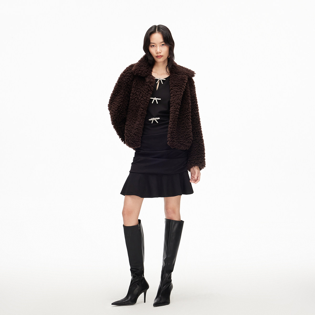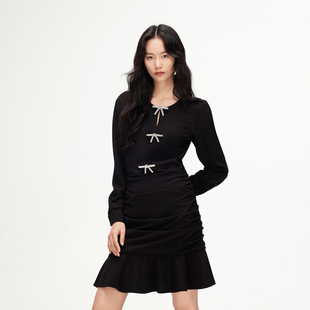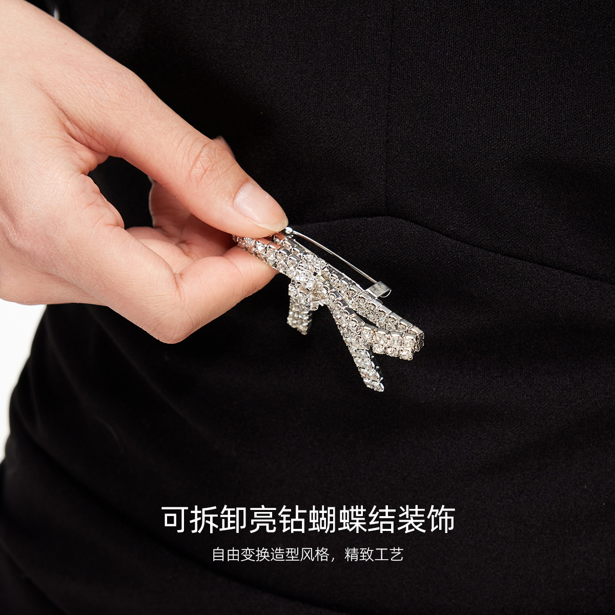 修身 Vero 镂空可拆亮钻蝴蝶结泡泡袖 新款 礼服 Moda连衣裙2026春季