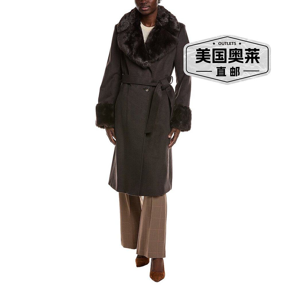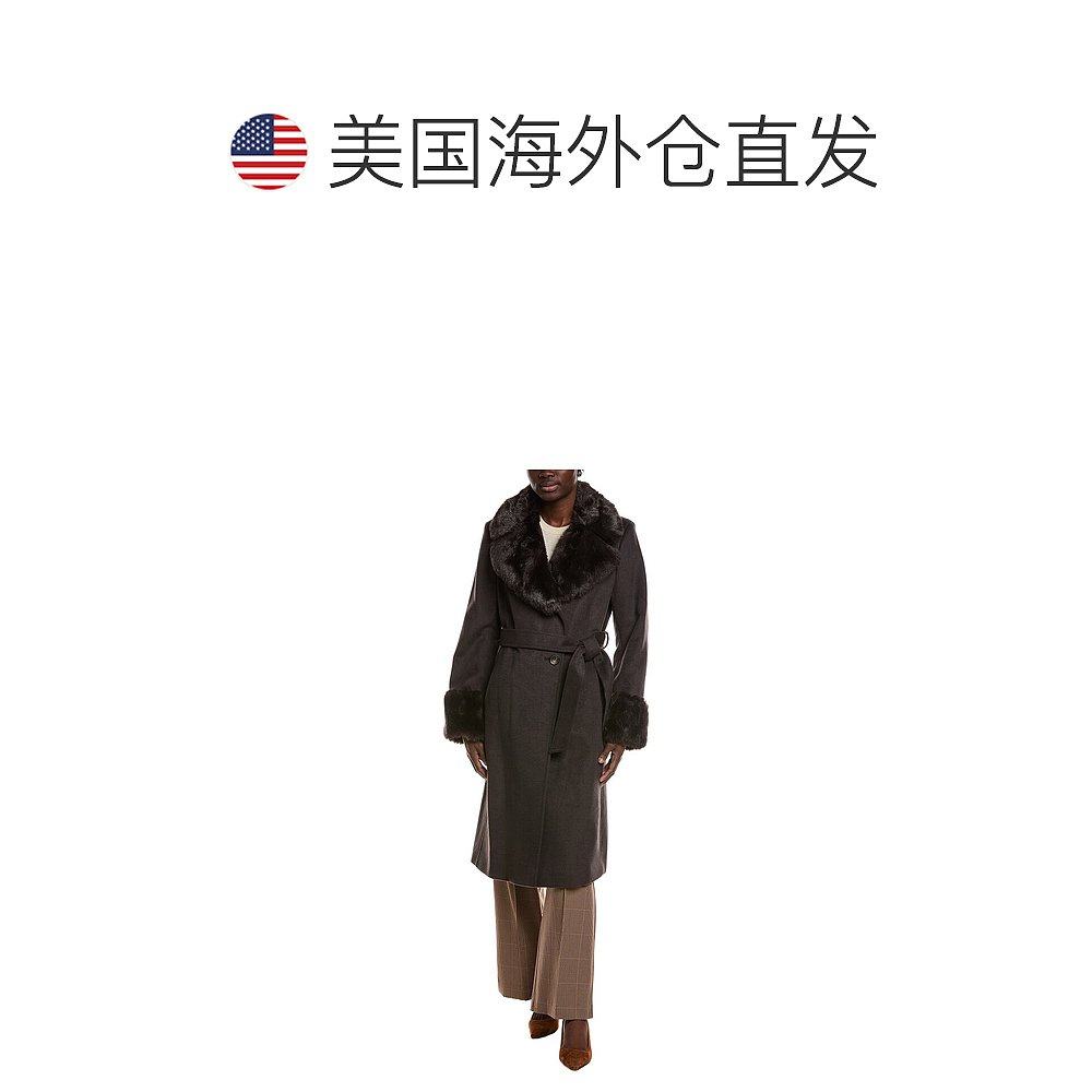 Wool Belted Blend Coat 美国奥莱直发 自营Via brown Spiga
