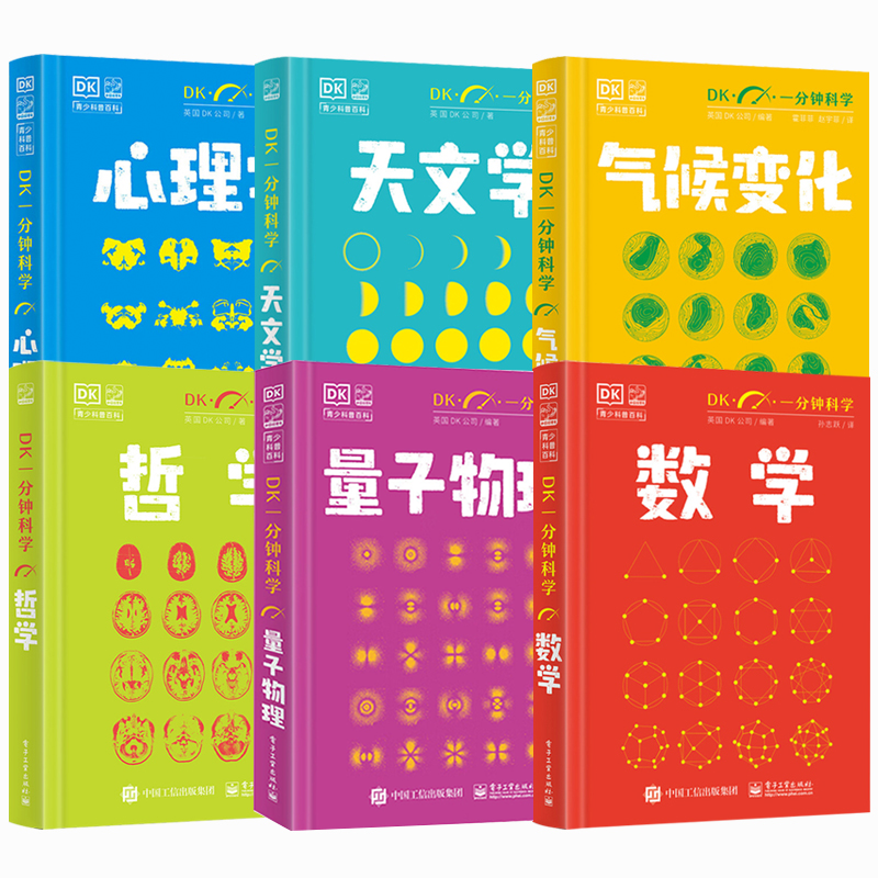 DK一分钟数学心理学量子物理哲学天文学 DK一分钟科学系列 15岁儿童青少年科普百科三四五六年级中小学生课外书 全套6册