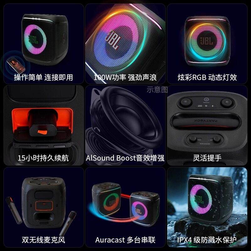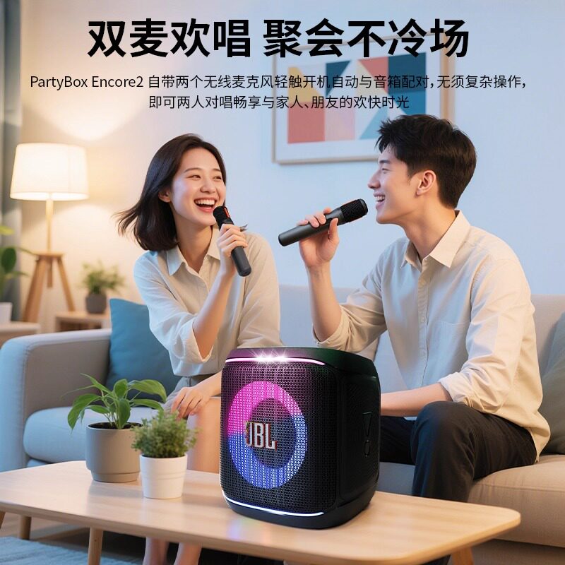 JBL音乐唱将二代蓝牙音响partybox2代家庭KTV话筒套装 户外K歌防水