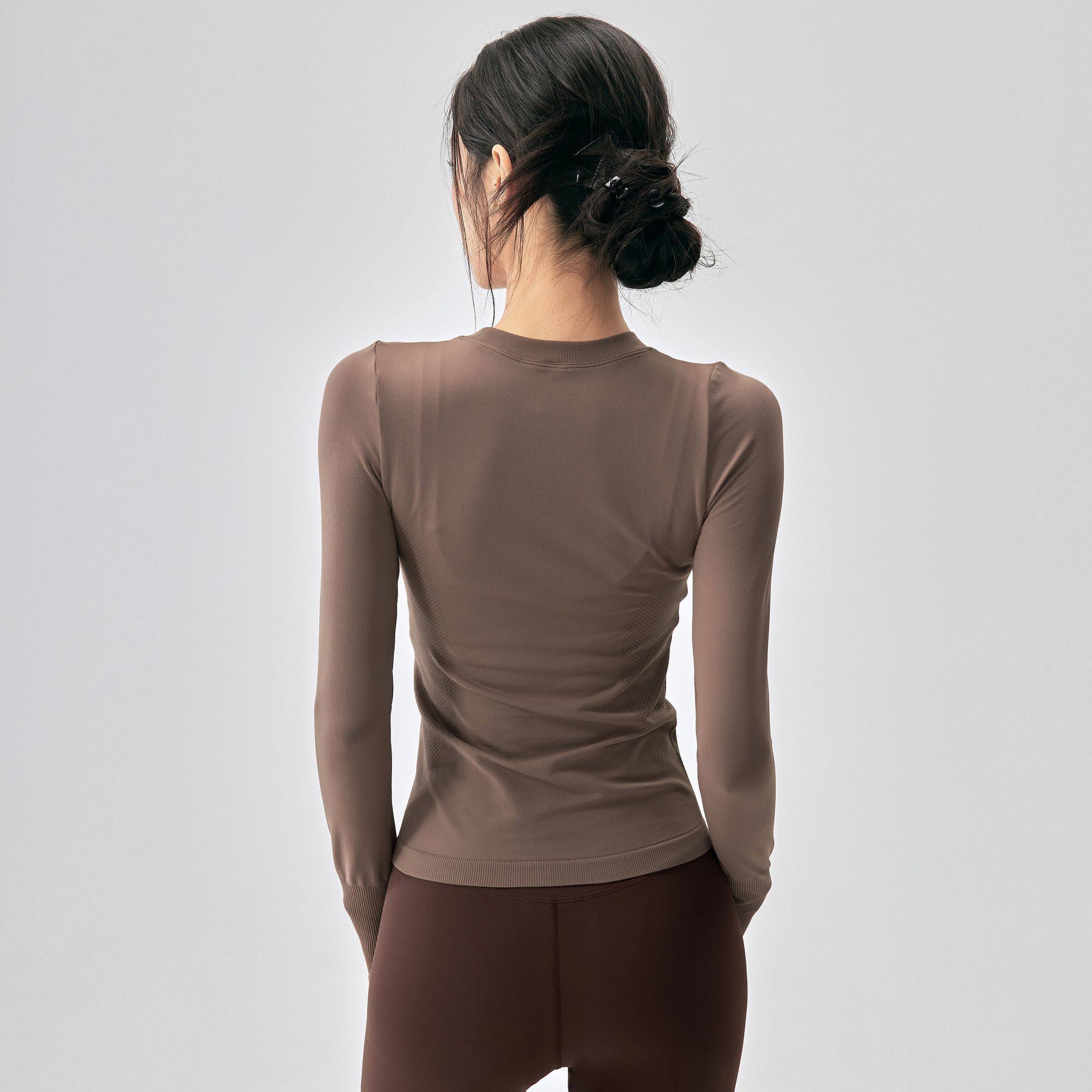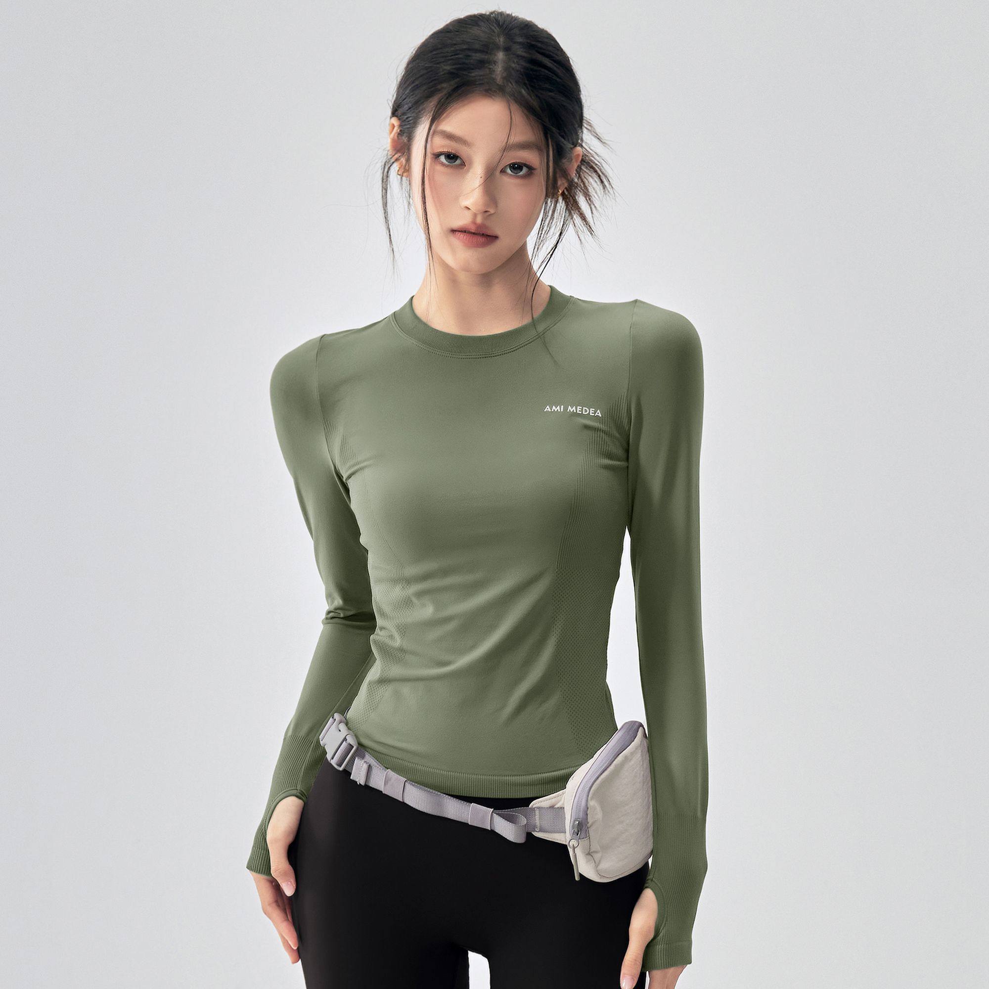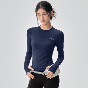 辣妹女孩弹力瑜伽服修身 透气显瘦普拉提训练上衣 速干跑步运动长袖