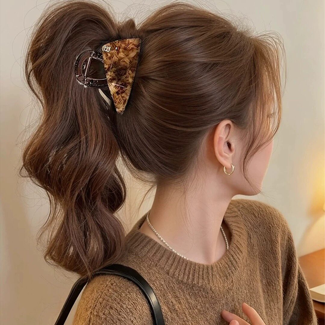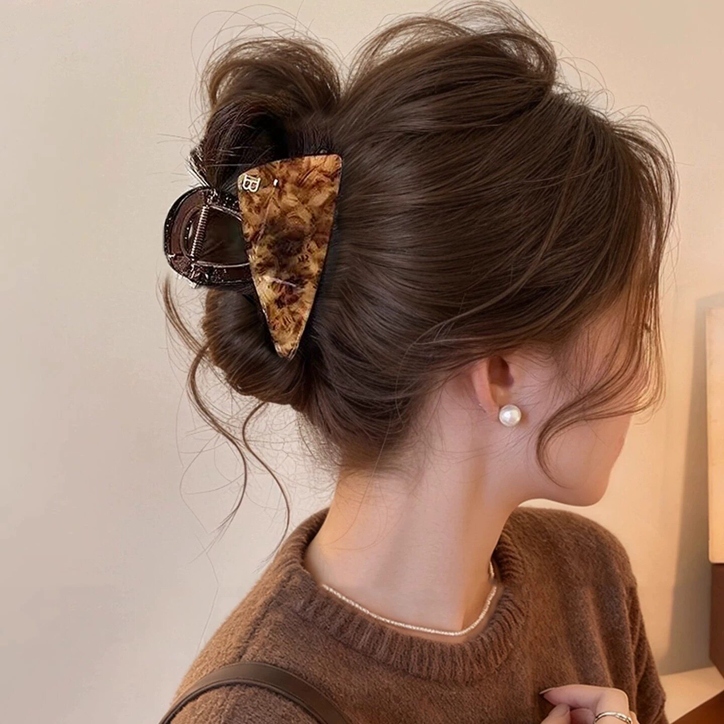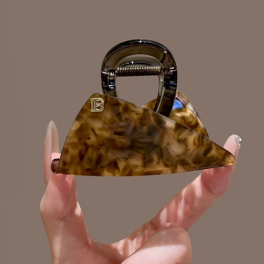法式 仿醋酸琥珀豹纹发卡发夹发饰三角抓夹女复古鲨鱼夹半抓盘发