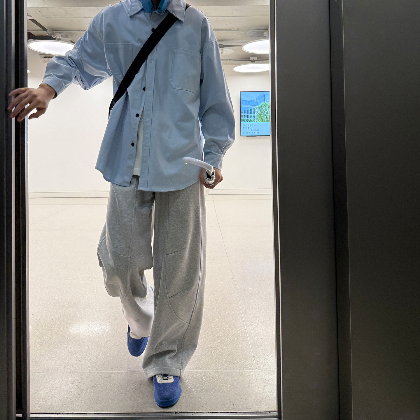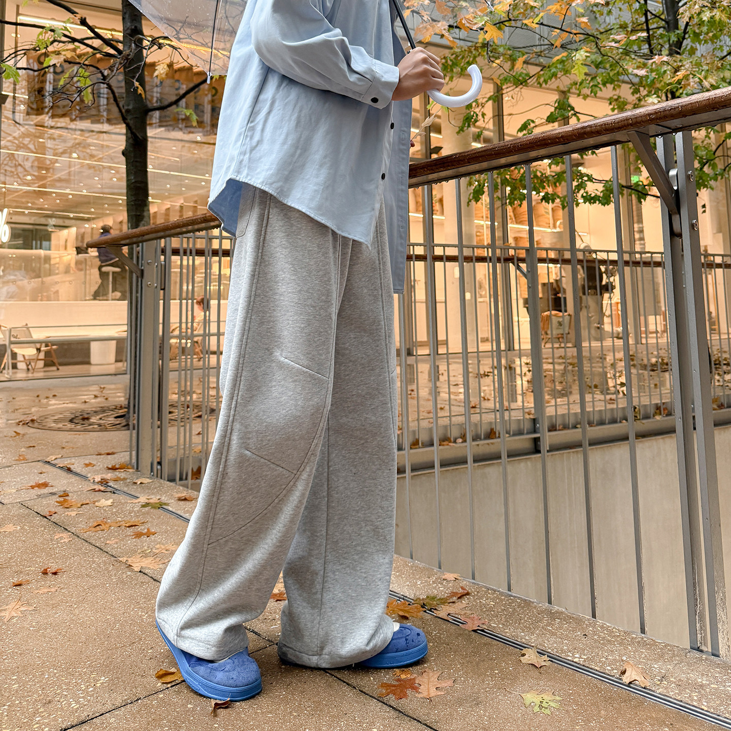 宽松黑色休闲裤 加绒卫裤 子女秋冬运动裤 灰色弯刀裤 长裤 oneup美式