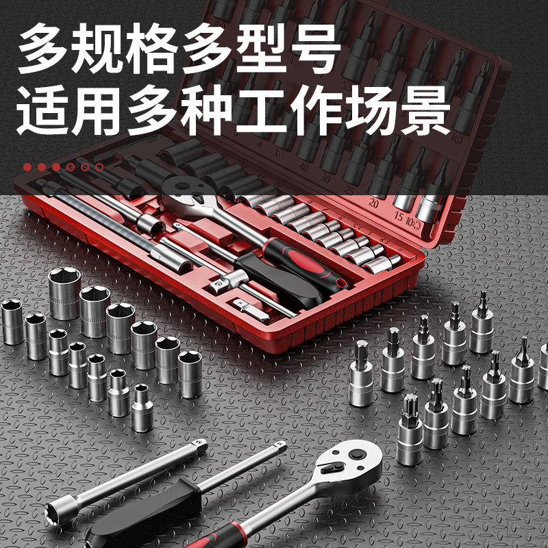 工具五金套筒组套棘轮扳手 4汽车维修53件套通用汽修组合套装