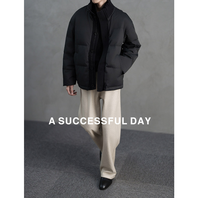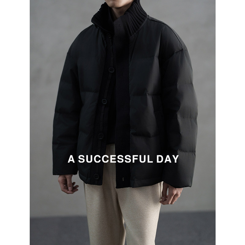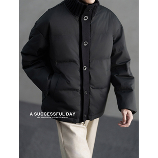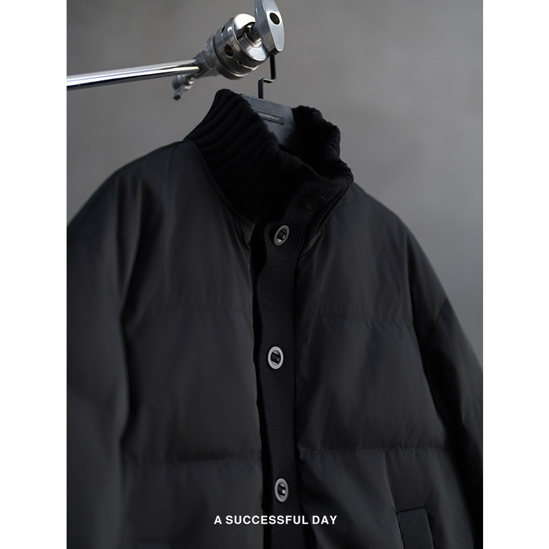 冬季 2025新款 保暖外套 毛线拼接立领加厚90白鸭绒羽绒服男士 ASSDY