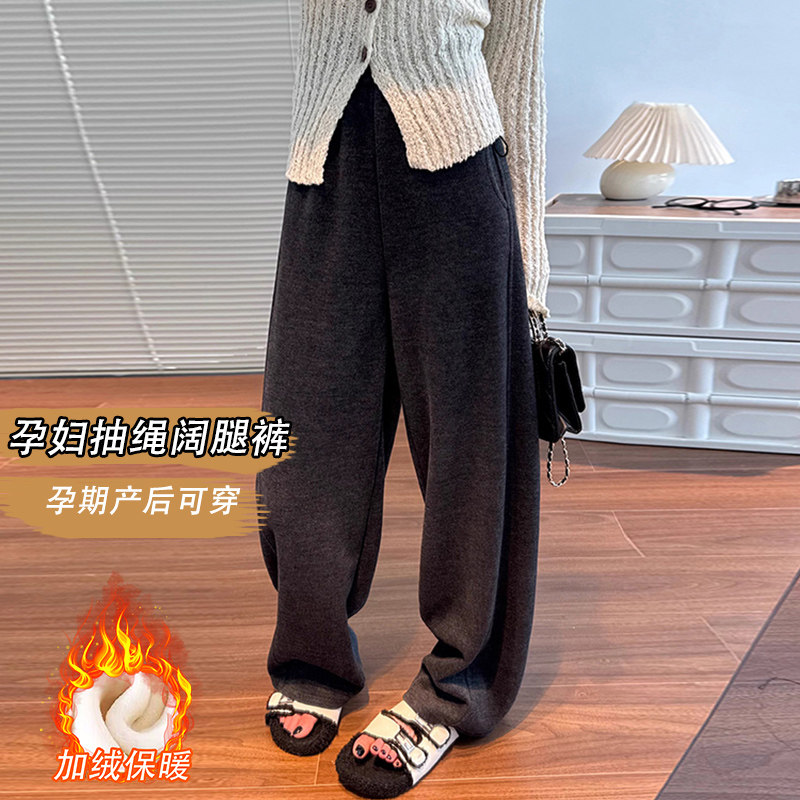 子老钱风宽松弯镰刀裤 秋冬高腰直筒加厚裤 冬 子无托腹阔腿裤 孕妇裤