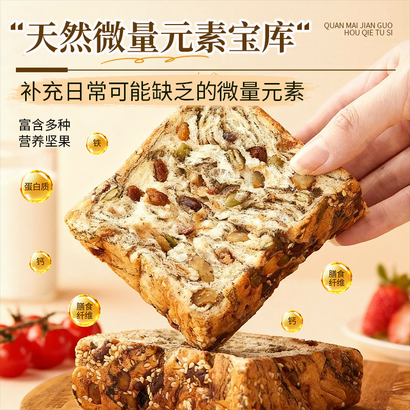 全麦坚果面包厚切吐司减早餐0添加无糖0脂专用代餐肥官方旗舰店