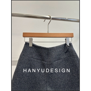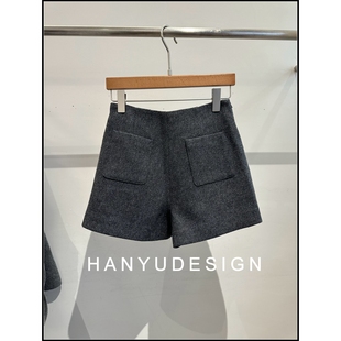 百搭高腰灰色休闲100%羊毛呢短裤 时尚 女 韩钰DESIGN