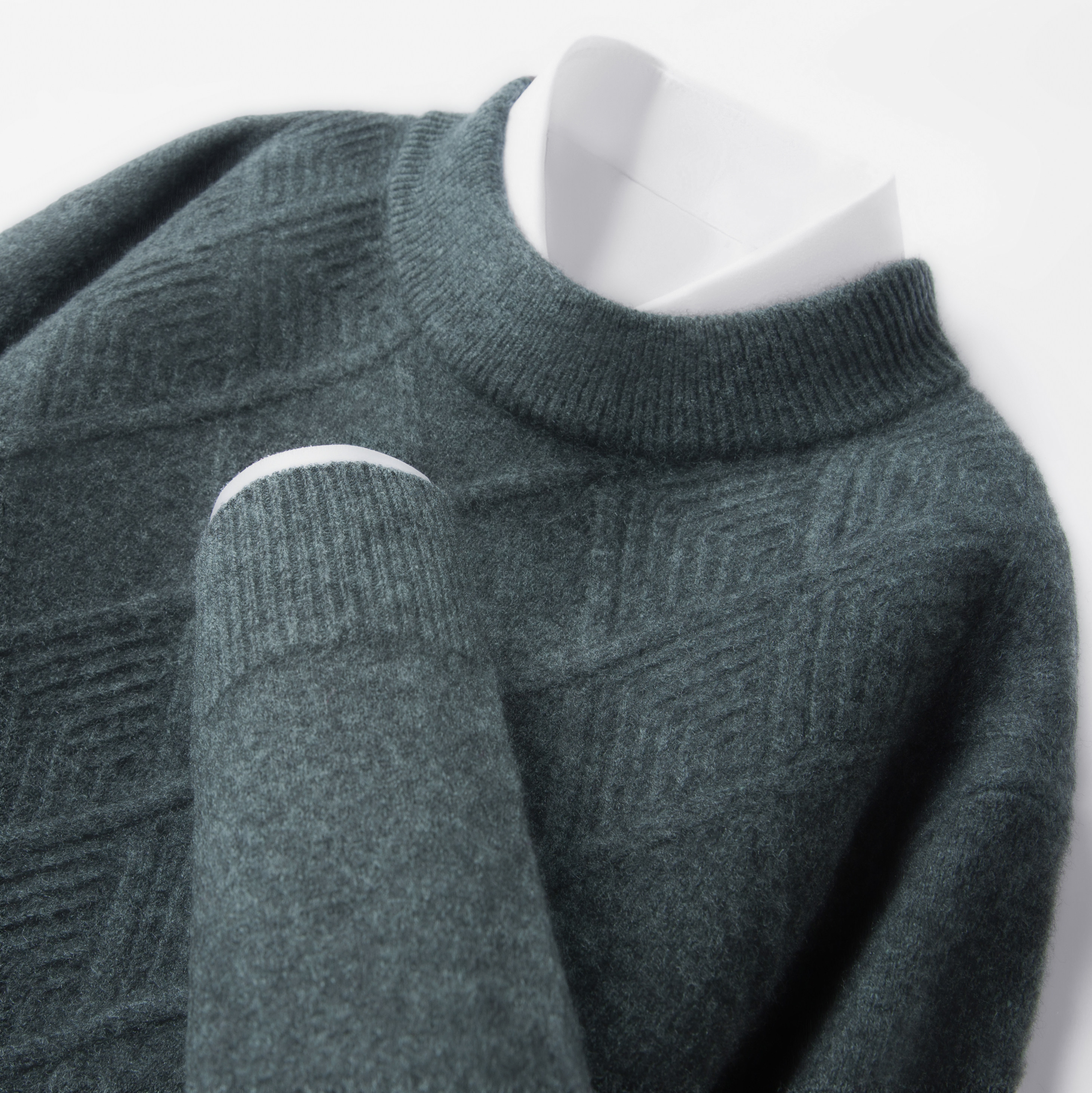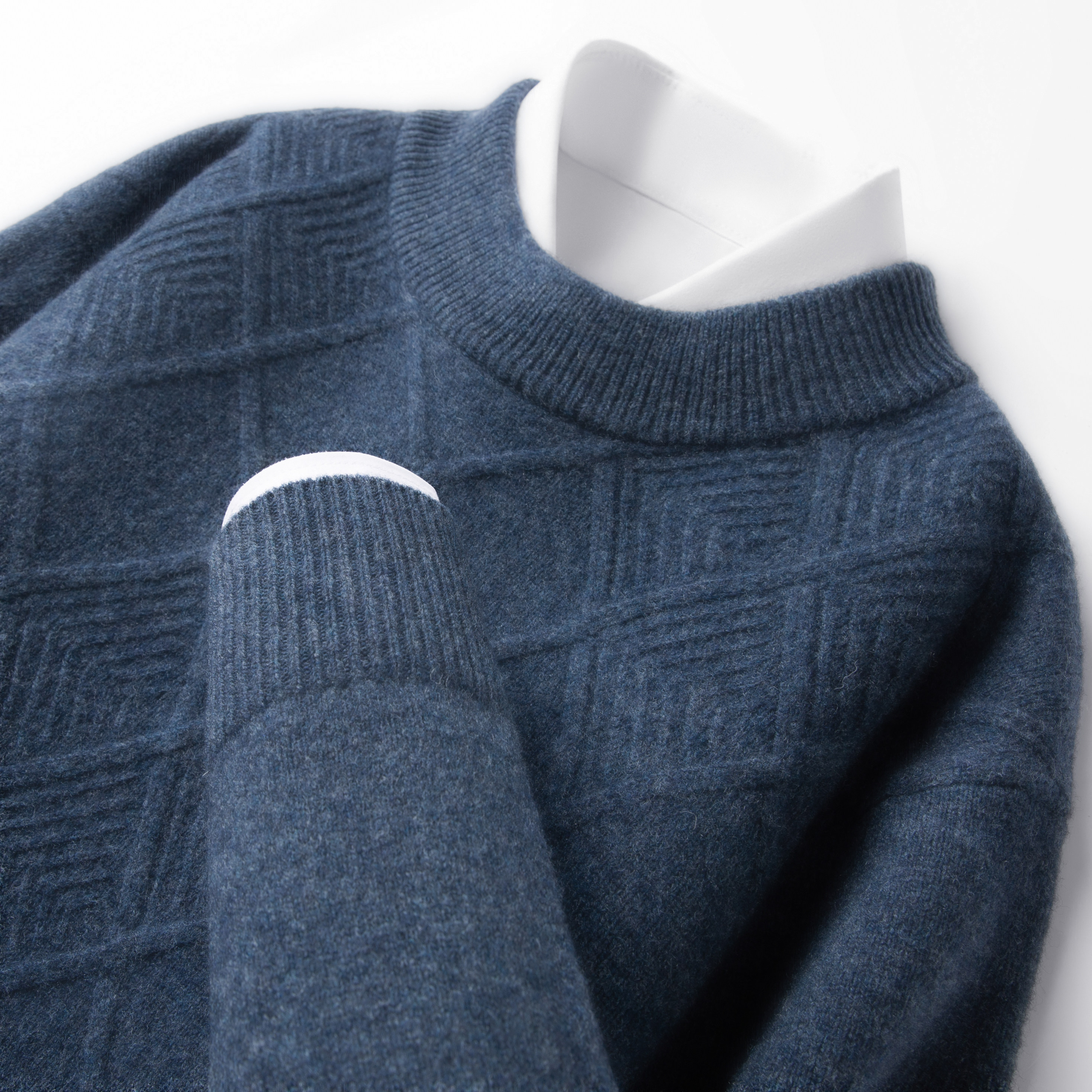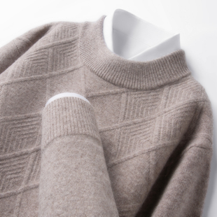 圆领加厚保暖毛衣中青年针织羊毛衫 鄂尔多斯市100%纯山羊绒衫 男士