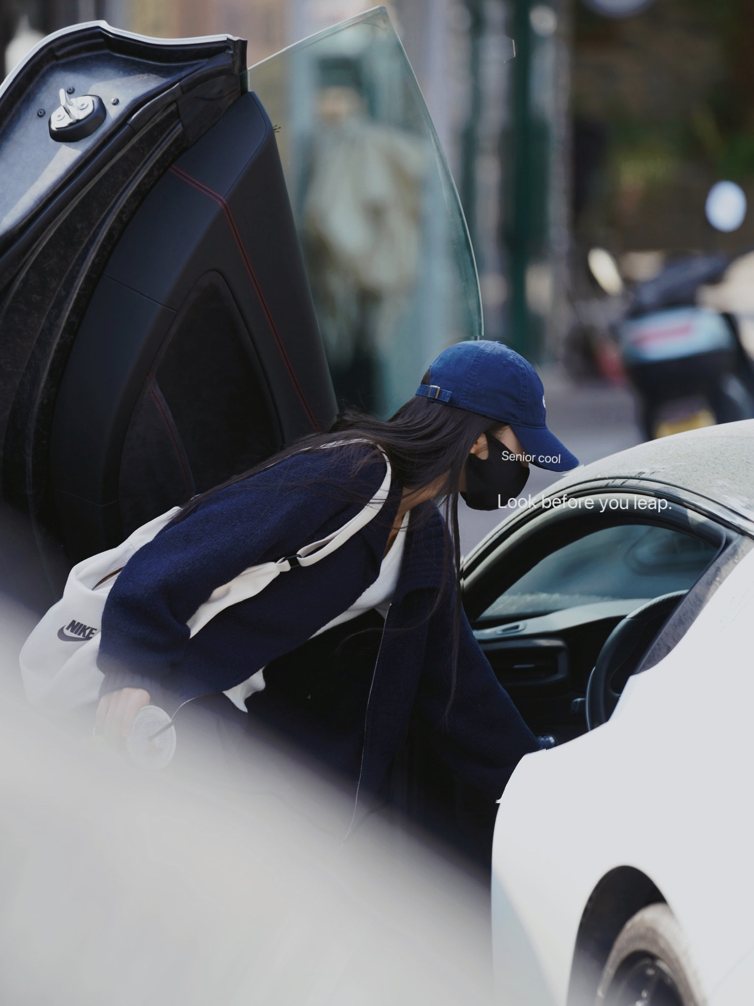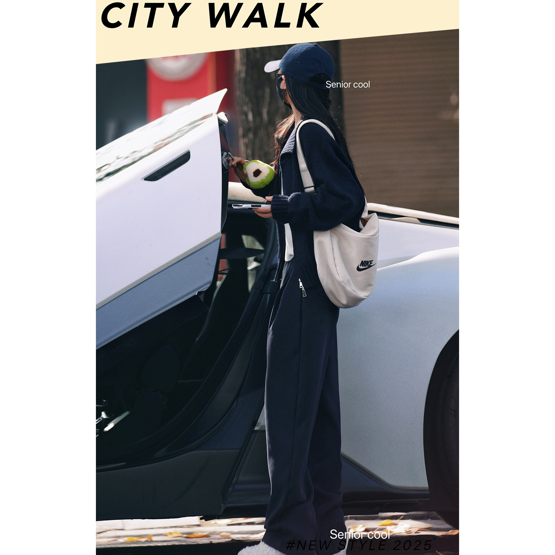 女冬季 藏蓝色运动裤 休闲百搭 加绒松紧腰宽松 LISEYEN设计师原创