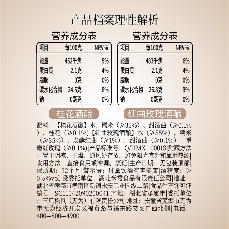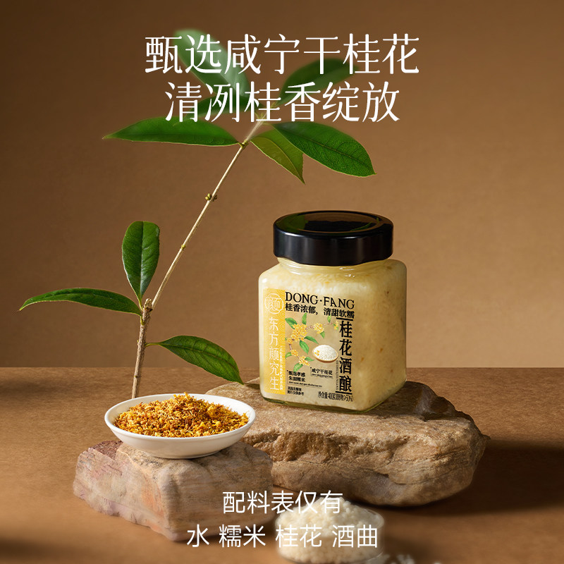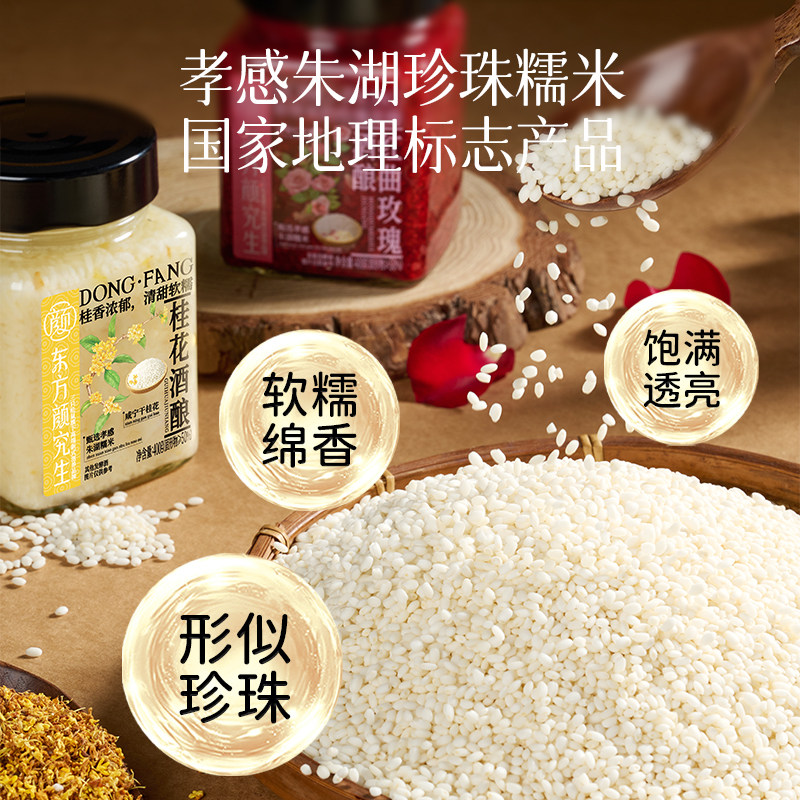东方颜究生_花香双味酒酿礼盒0蔗糖桂花红曲玫瑰糯米酒曲三只松鼠