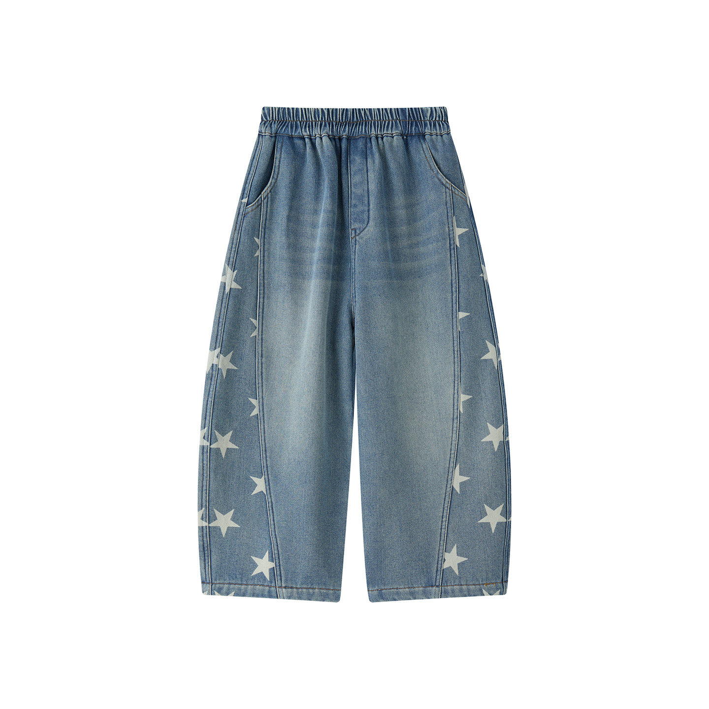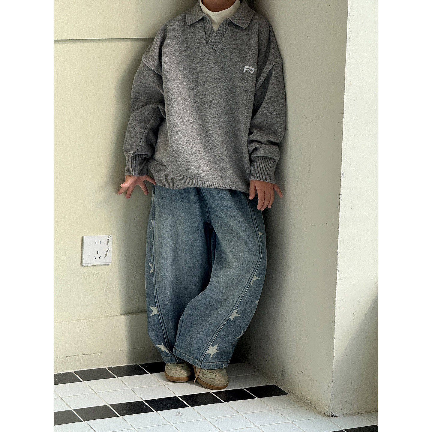 保暖卡通儿童休闲裤 虾酱麻麻男童加绒牛仔裤 男孩长裤 2025新款 冬季