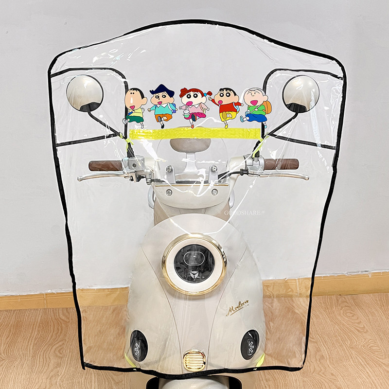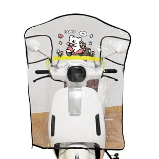 电瓶车挡风板可爱卡通电瓶摩托车挡风罩四季 通用透明防寒防水板