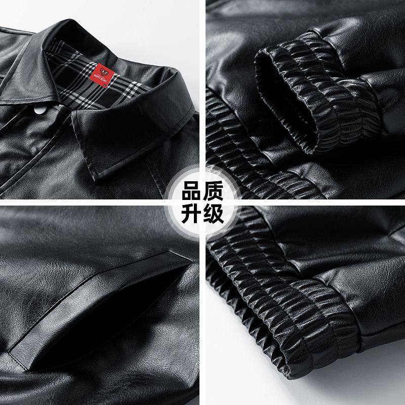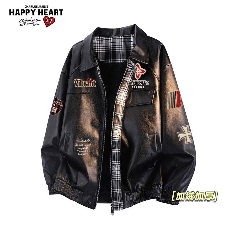 查尔斯桃心复古印花加绒加厚PU皮夹克男士 潮流机车服上衣外套 冬季