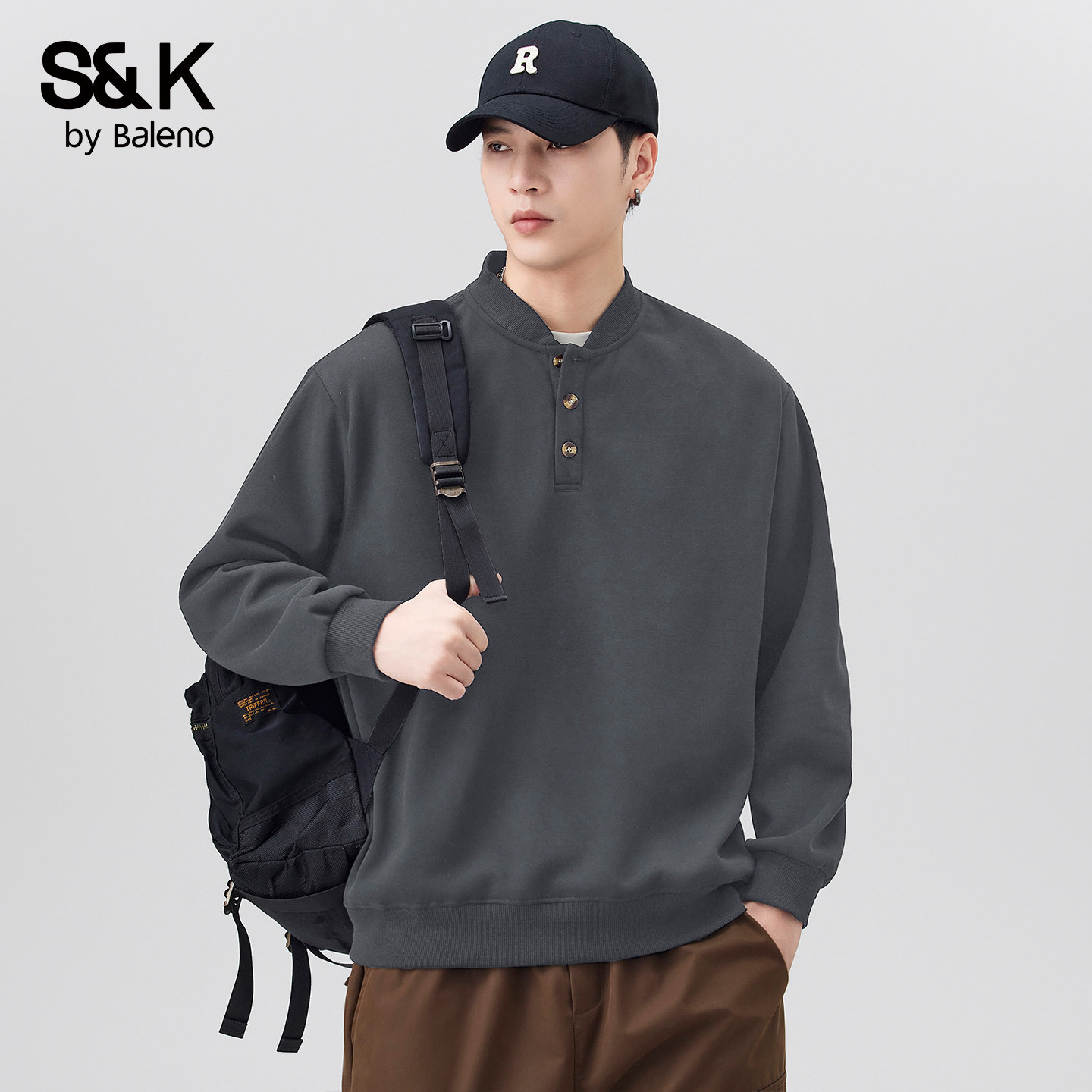 舒适百搭宽松时尚 新款 潮流上衣服YS 卫衣男春季 班尼路SK亨利领长袖