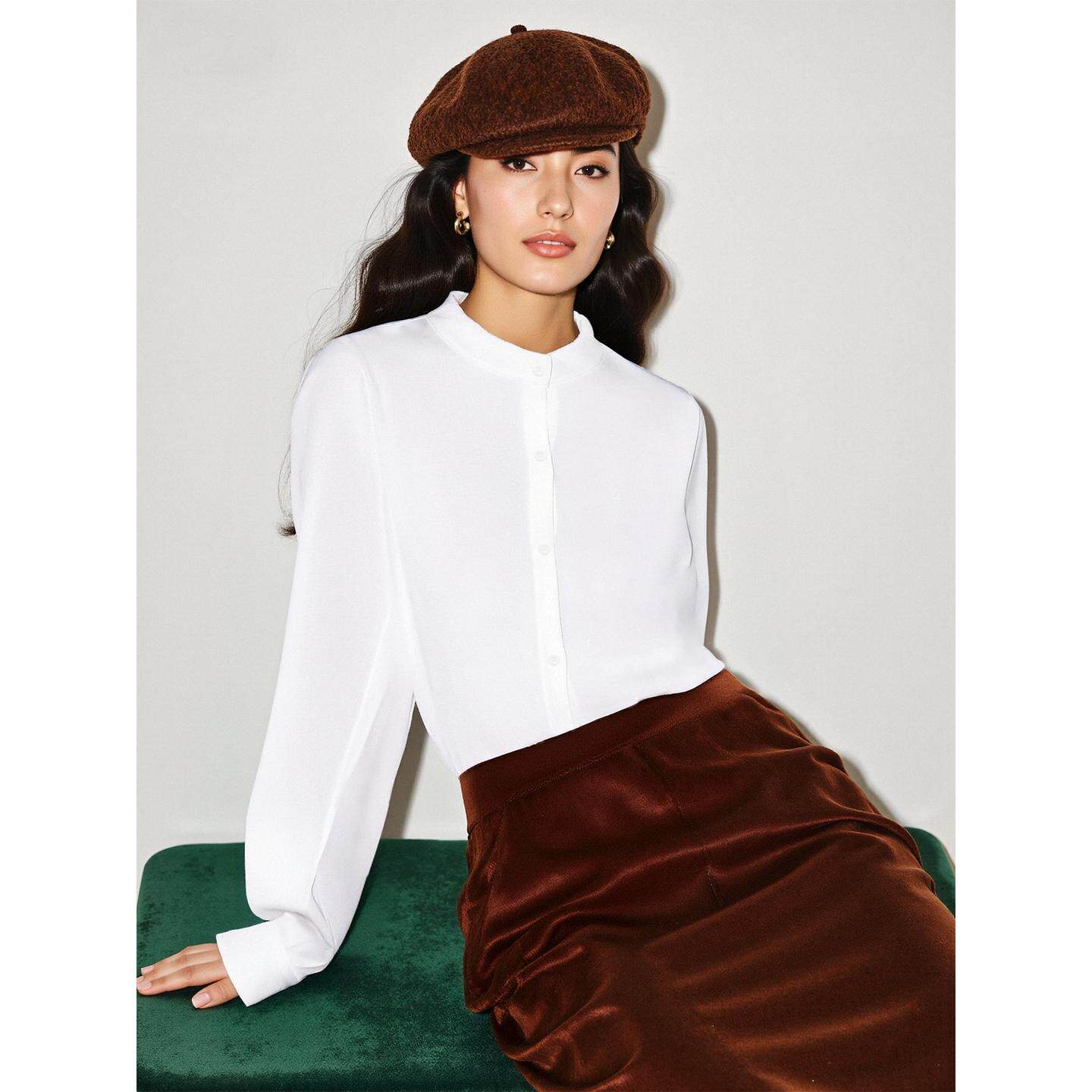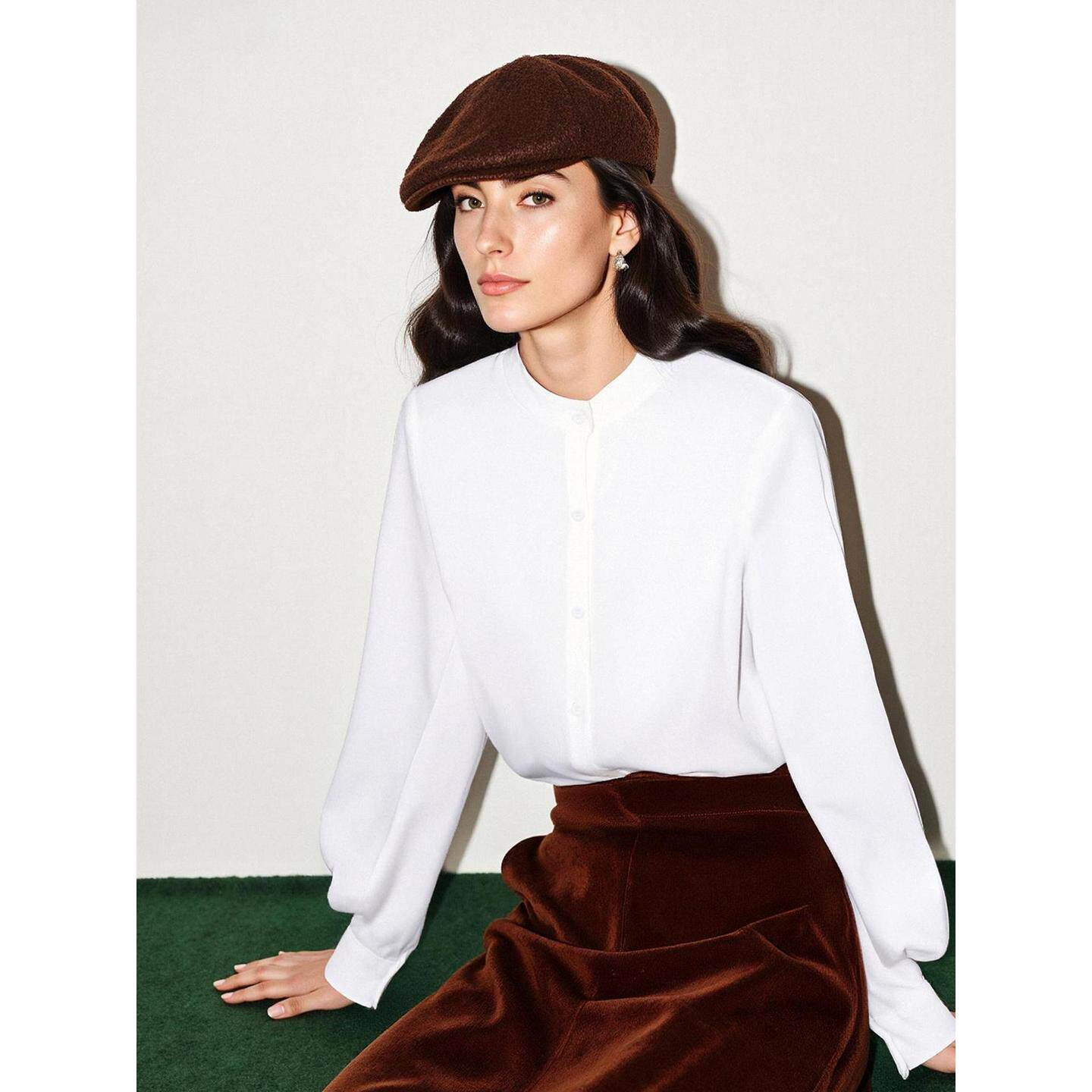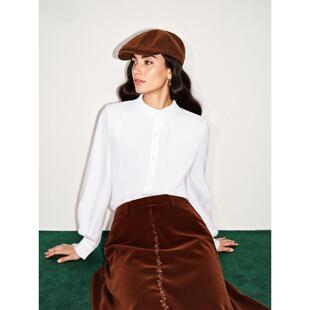 衬衫 百家好白色立领长袖 女士2026春季 新款 衬衣 Basic 灯笼袖 House