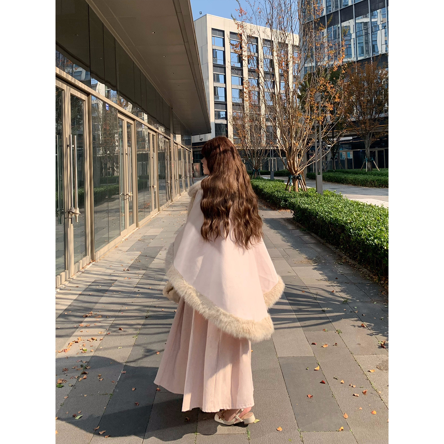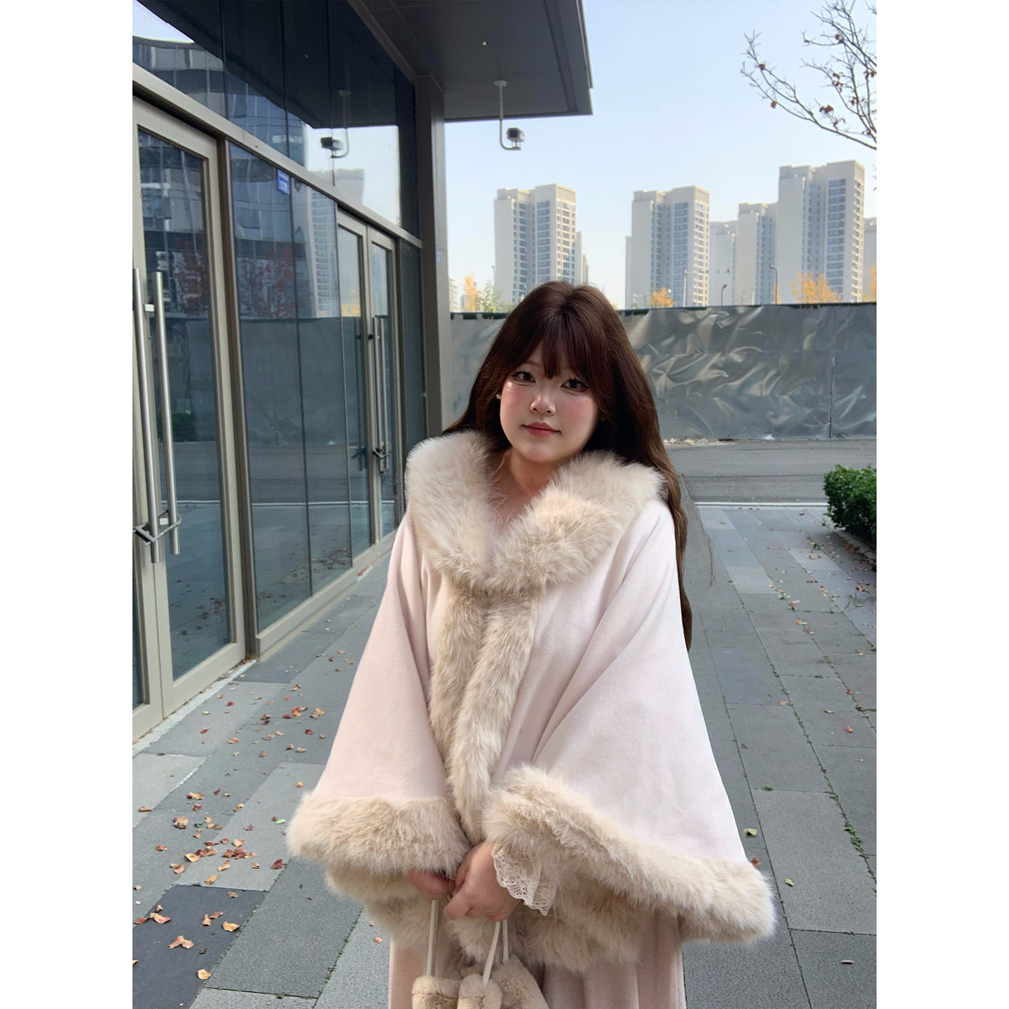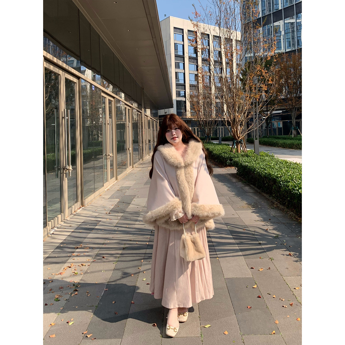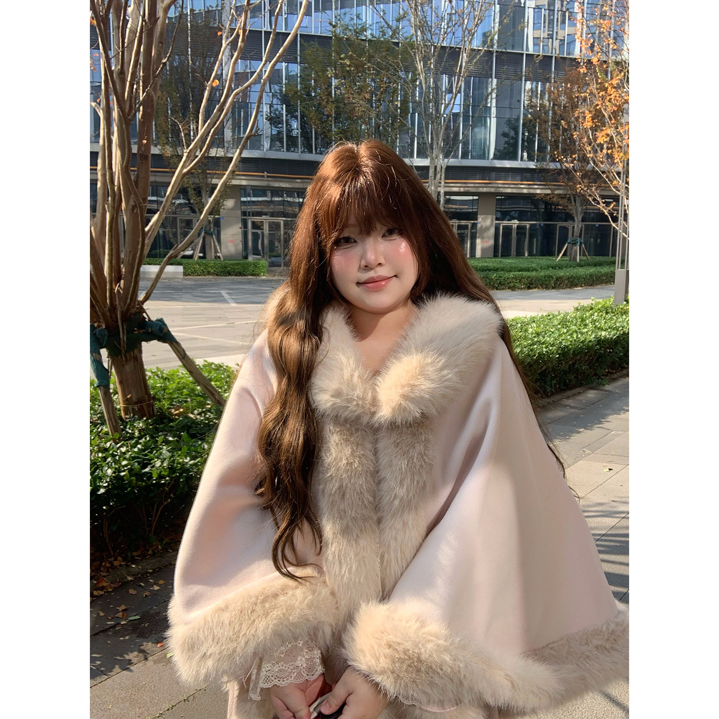 dese嘚瑟软糖大码 胖mm气质百搭千金风斗篷披肩 呢子短外套秋冬新款