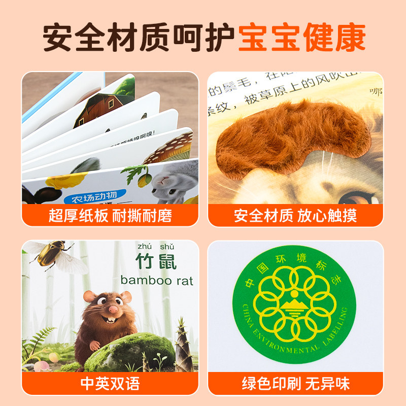 奇妙认知触摸书婴幼儿绘本0到3岁触摸训练动物启蒙认知益智早教书翻翻书撕不烂婴儿玩具触觉专注力玩具游戏书 宝宝 抖音同款