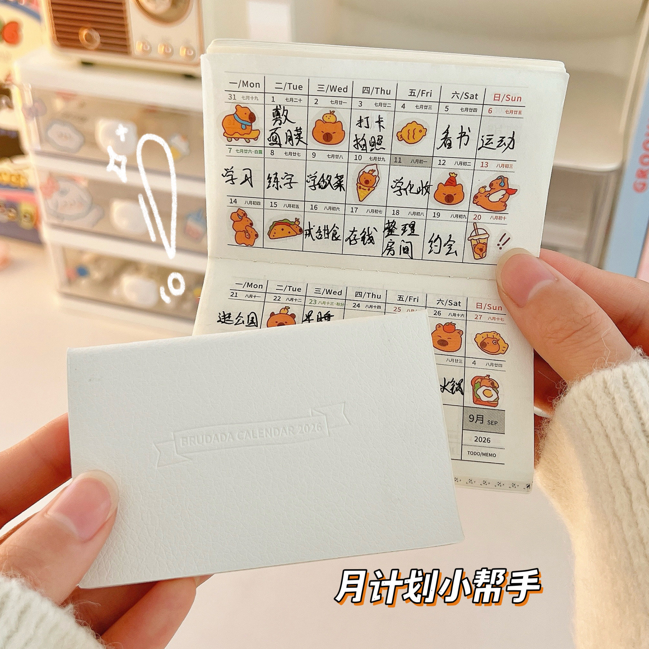 卡杰2026年日程本简约ins风每周计划本工作日志笔记本子高颜值日历手帐记事本软皮日记本成人手账可定制logo