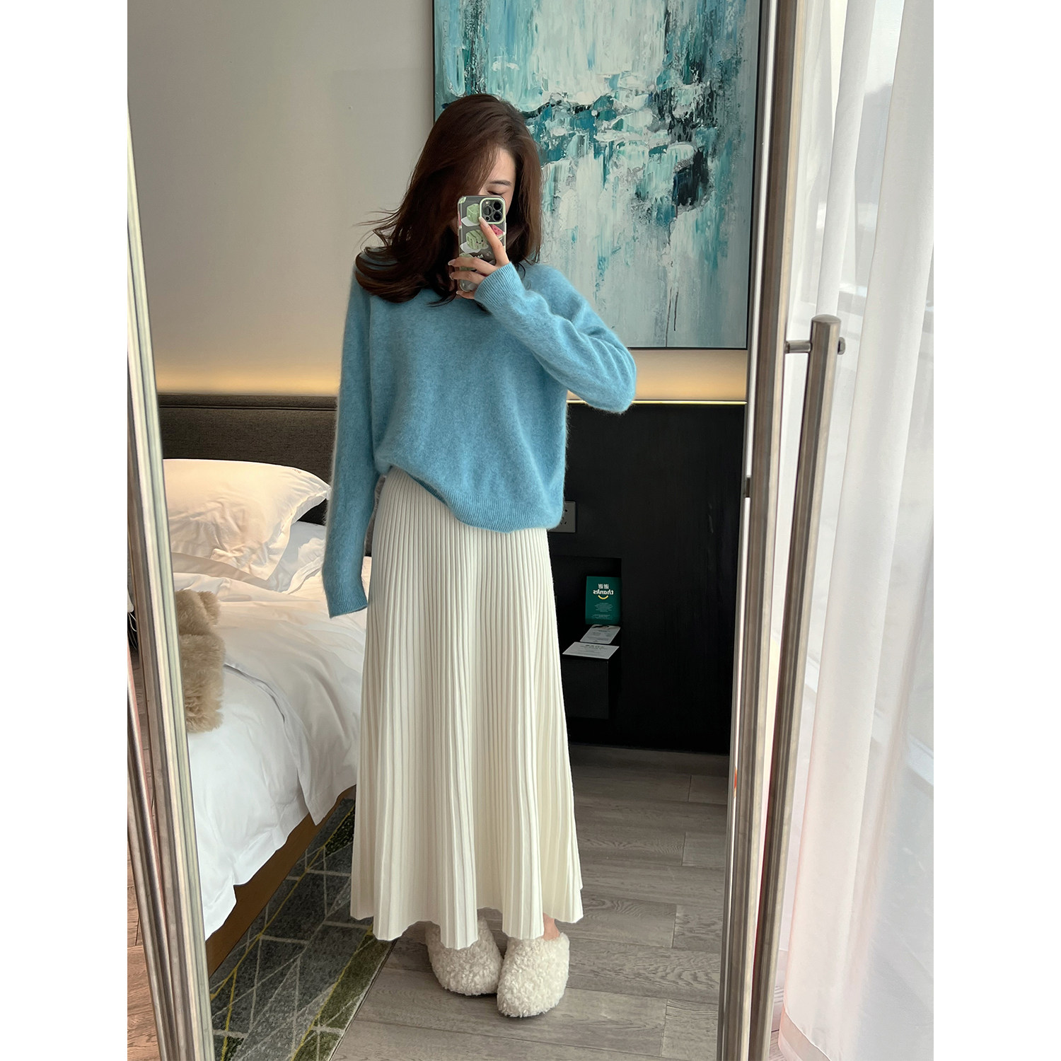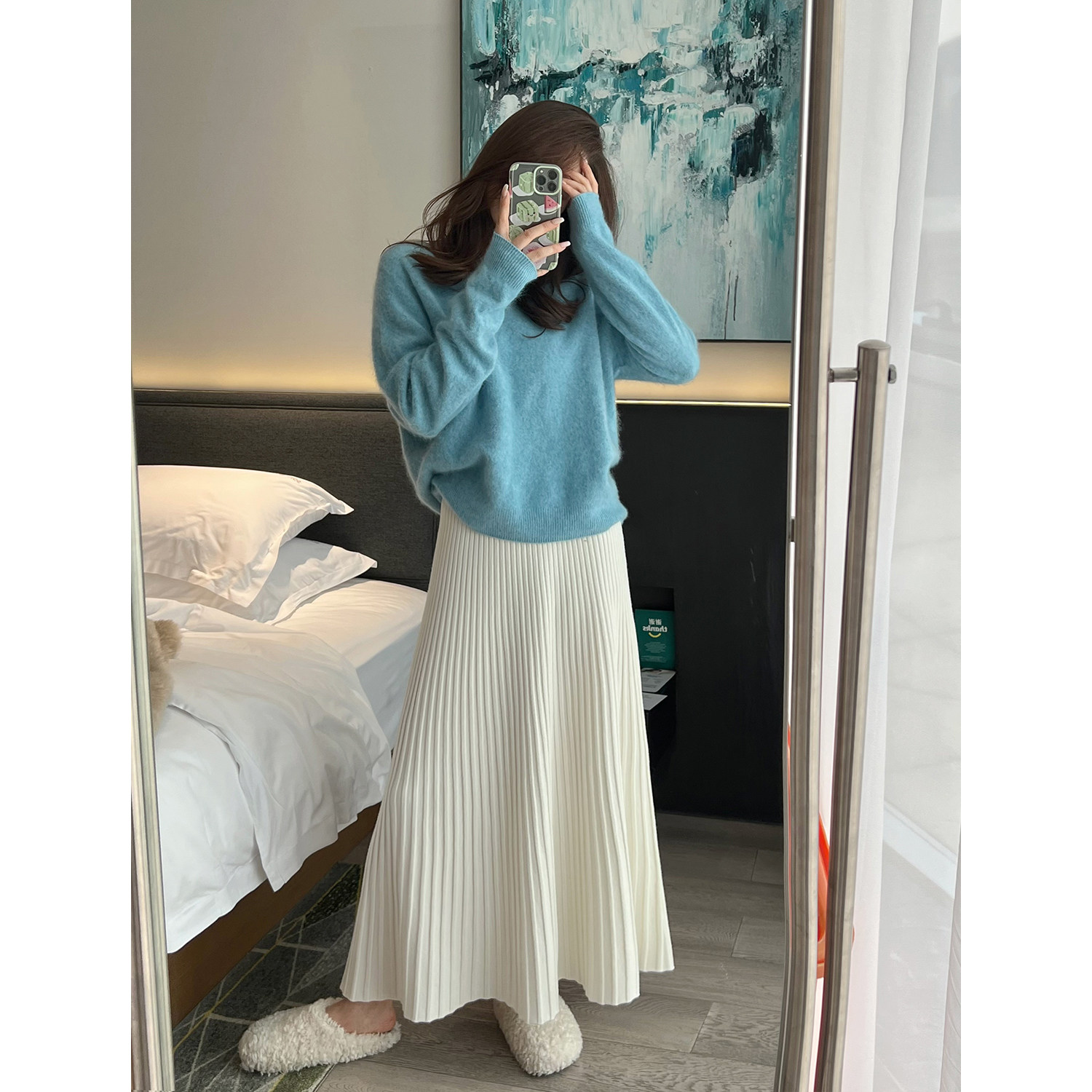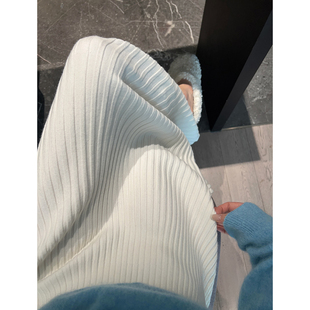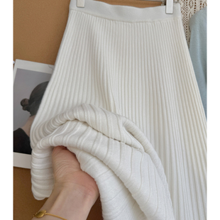 气质甜美设计感坑条白色伞裙2025冬季 垂感显瘦高腰半身裙长裙 新款