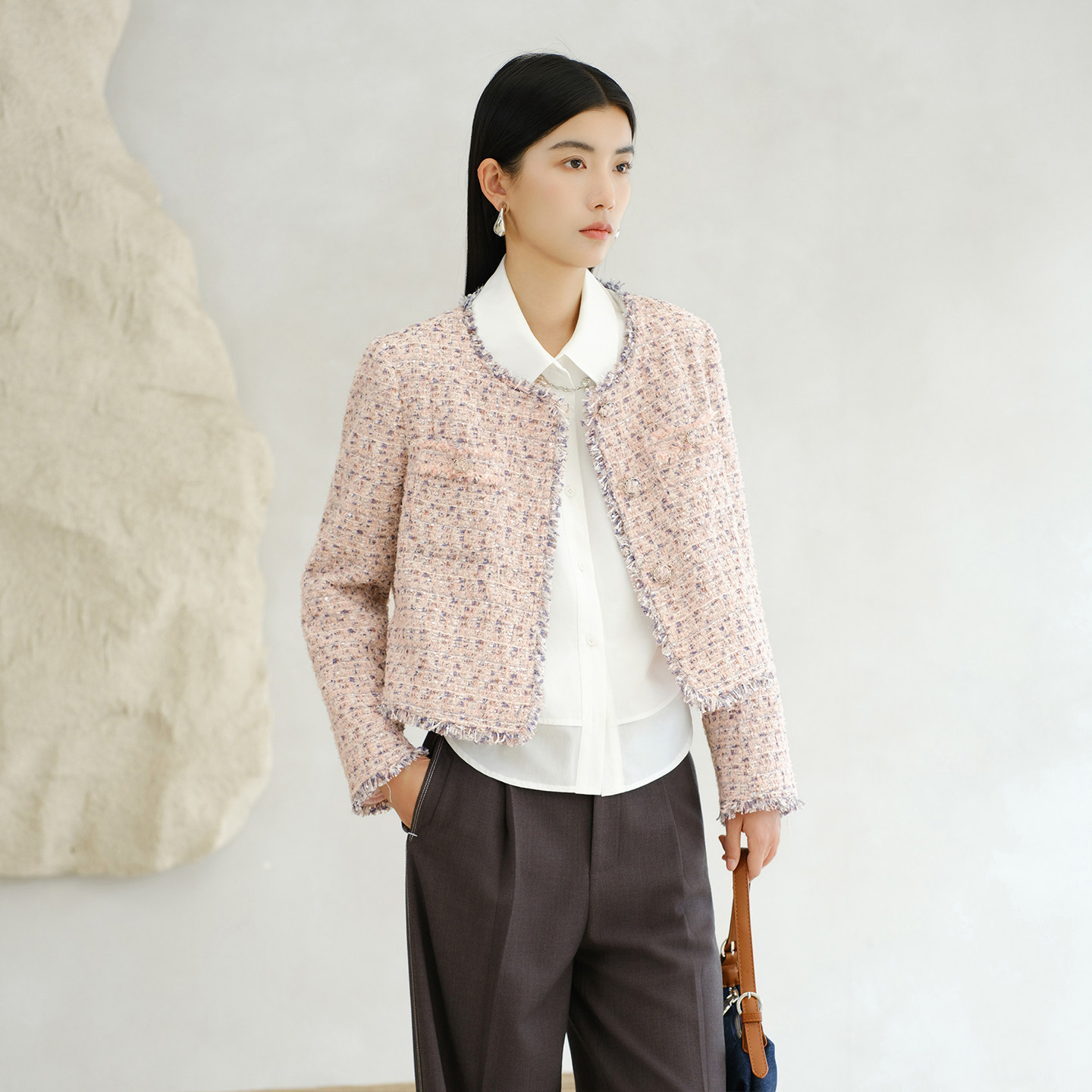 新款 阿依莲气质小香风短外套女26春季 独特漂亮上衣 商场同款
