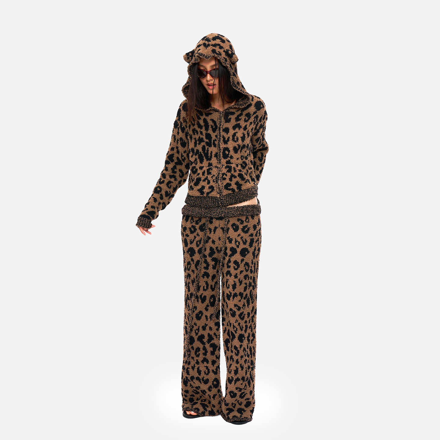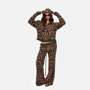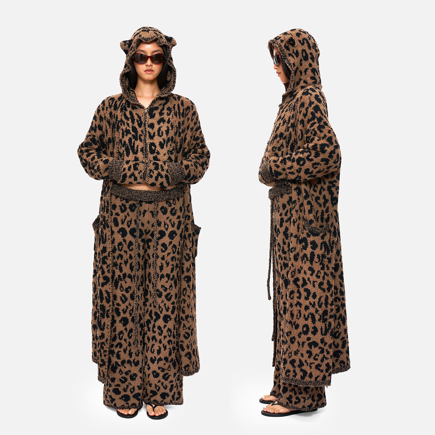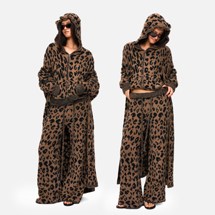 宽松裤 开衫 Time’松弛冬日豹纹毛茸茸小耳朵连帽外套长款 ‘Chill