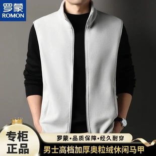 罗蒙男士 双面绒加厚休闲坎肩抓绒背心 奥粒绒保暖马甲2025秋冬新款