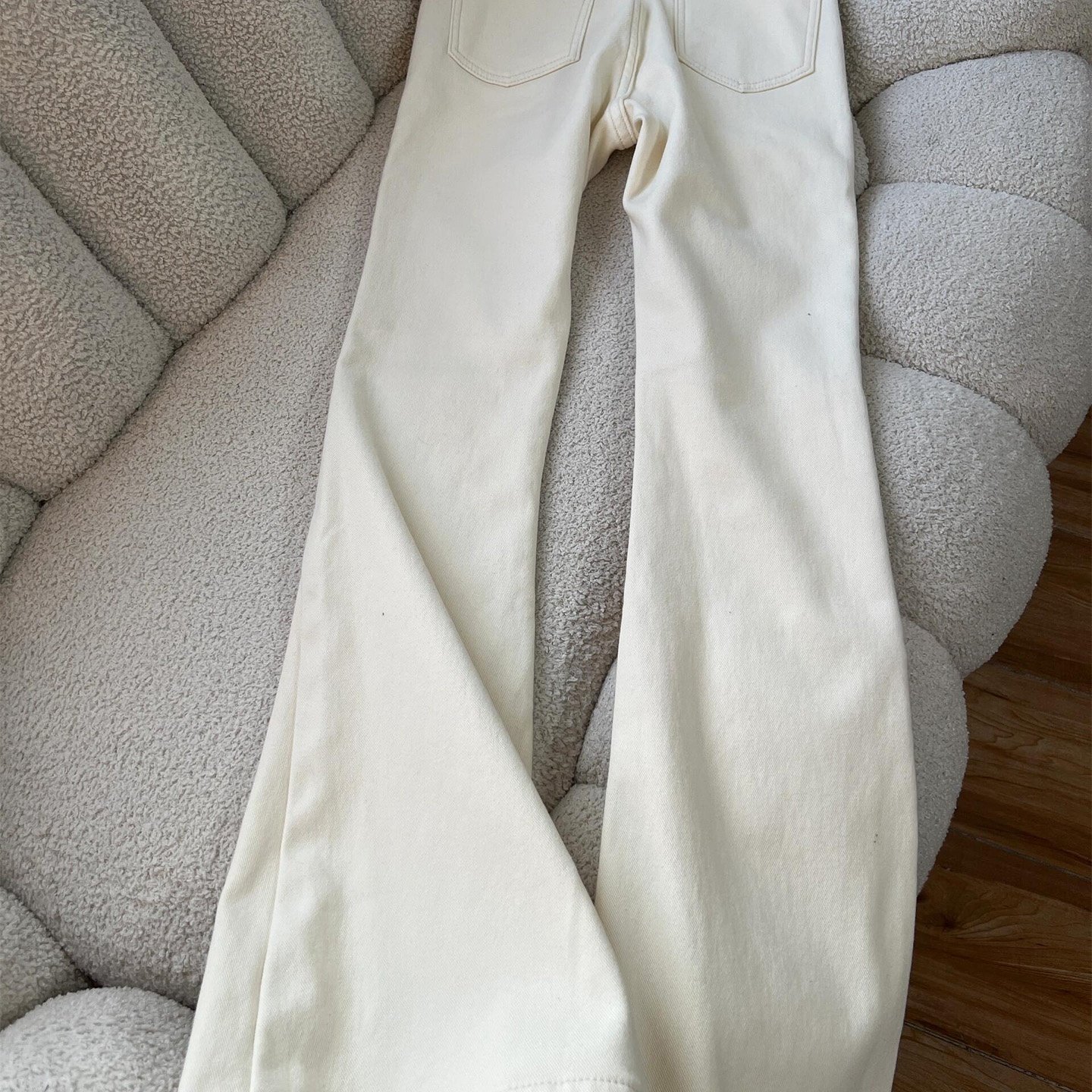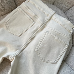 高腰马蹄裤 店主自留款 女秋冬加绒修身 米白色微喇叭牛仔裤 推荐