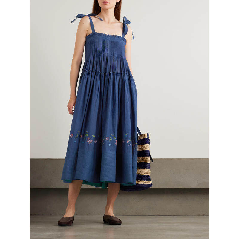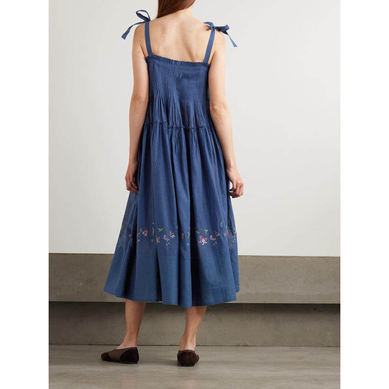 Riley 中长连衣裙 细褶层叠刺绣棉质真丝混纺中长连衣裙 女士 EKA