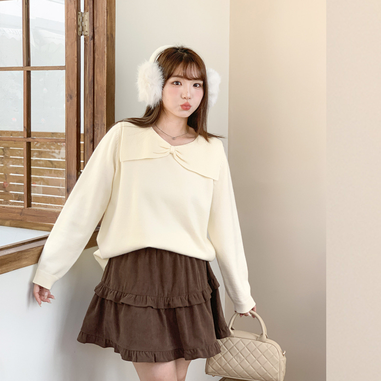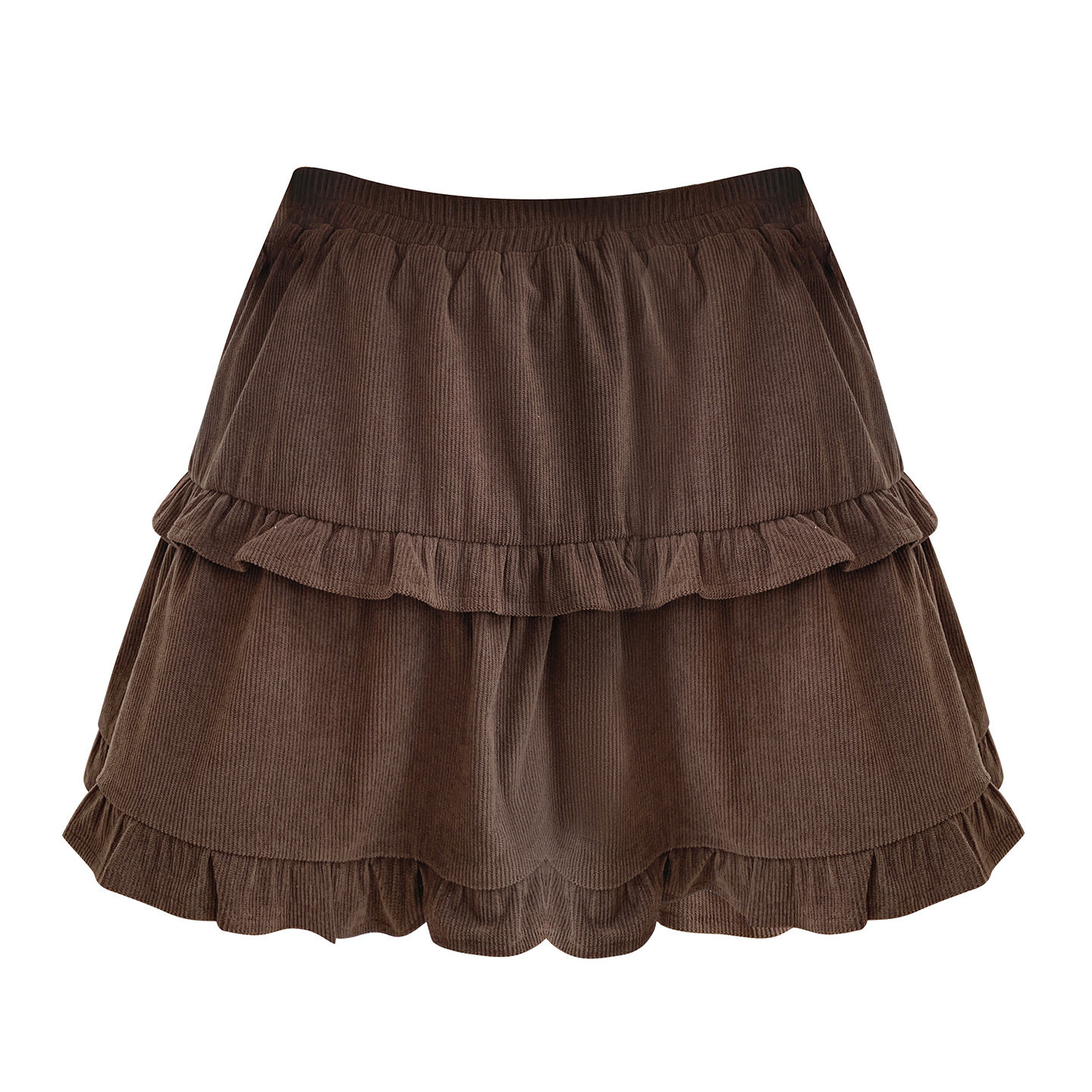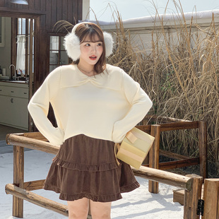 大码 灯芯绒蛋糕短裙胖mm减龄藏肉A字裙松紧高腰半身裙子32289 女装