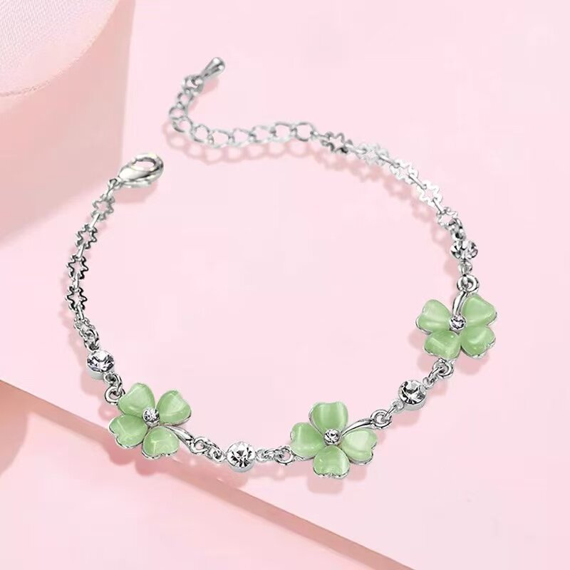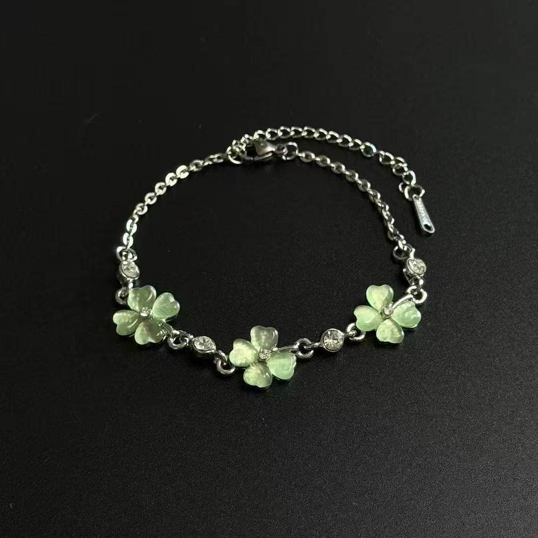 幸运草绿色四叶草猫眼石手链女高级简约小众设计感轻奢气质手饰
