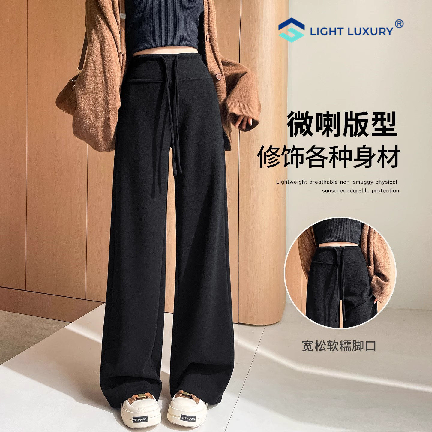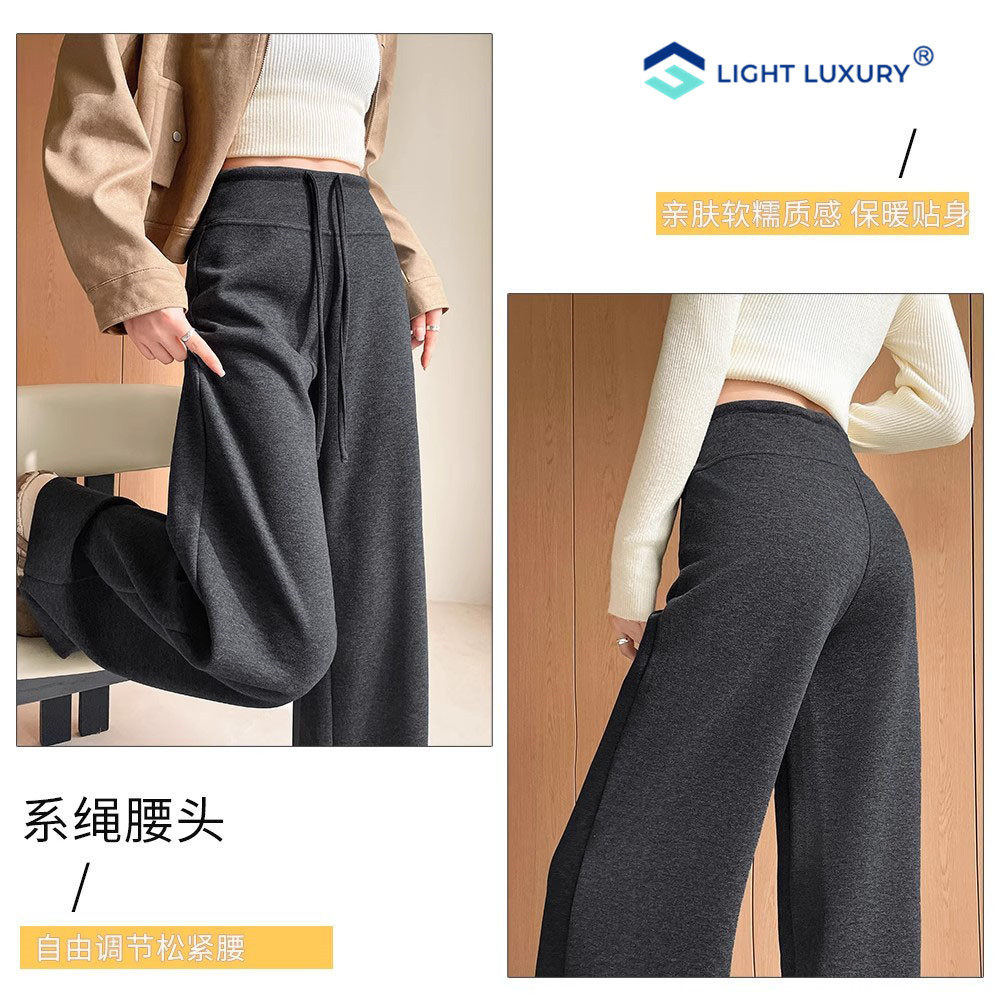 小个子面膜糯米裤 女格雷灰色秋冬加绒轻暖运动休闲裤 阔腿裤 窄版