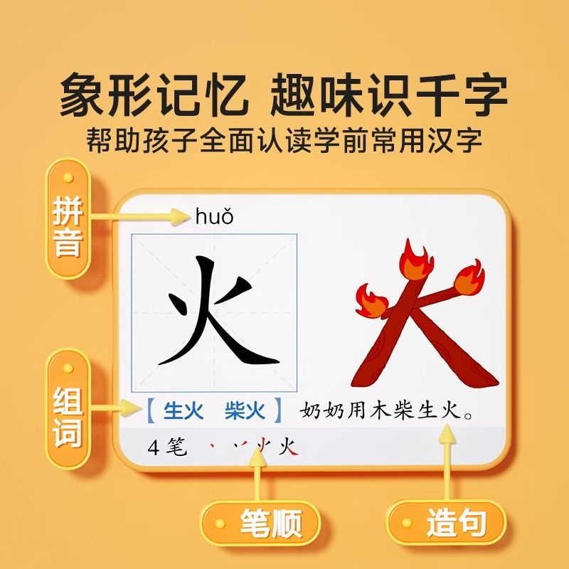 时光学幼儿象形识字1600字幼儿识字宝宝早教启蒙学前早教训练幼儿园幼小衔接识字卡片闪卡看图识字启蒙趣味识字用书幼儿认字3 6岁