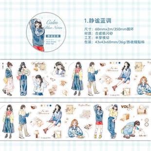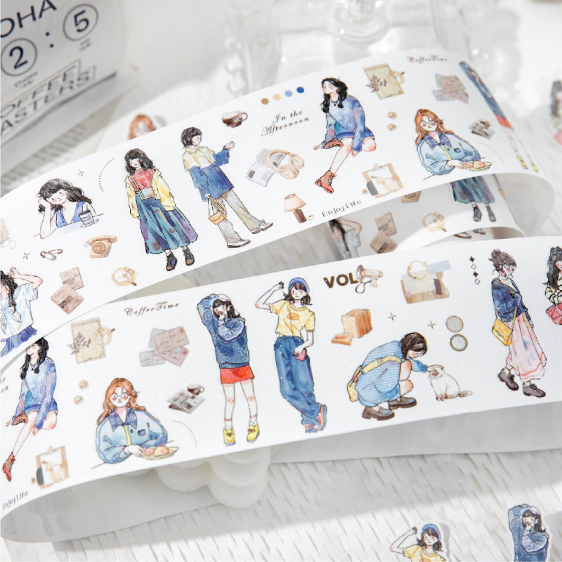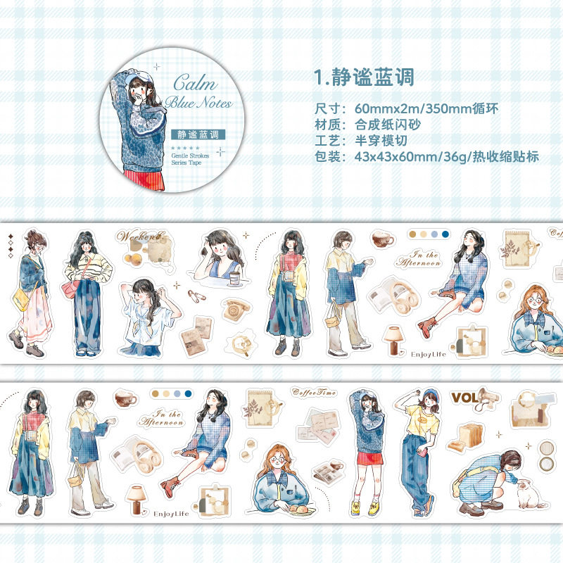 森屿暖树温柔笔触·云合成纸闪砂模切胶带 手账diy素材趣味贴纸