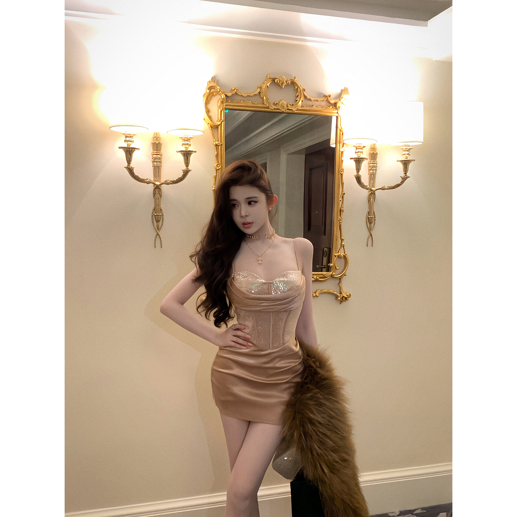新款 吊带连衣裙女2025冬季 性感包臀裙生日礼服裙子 法式 项天鹅er