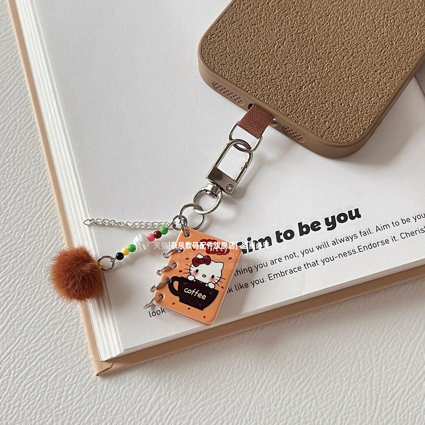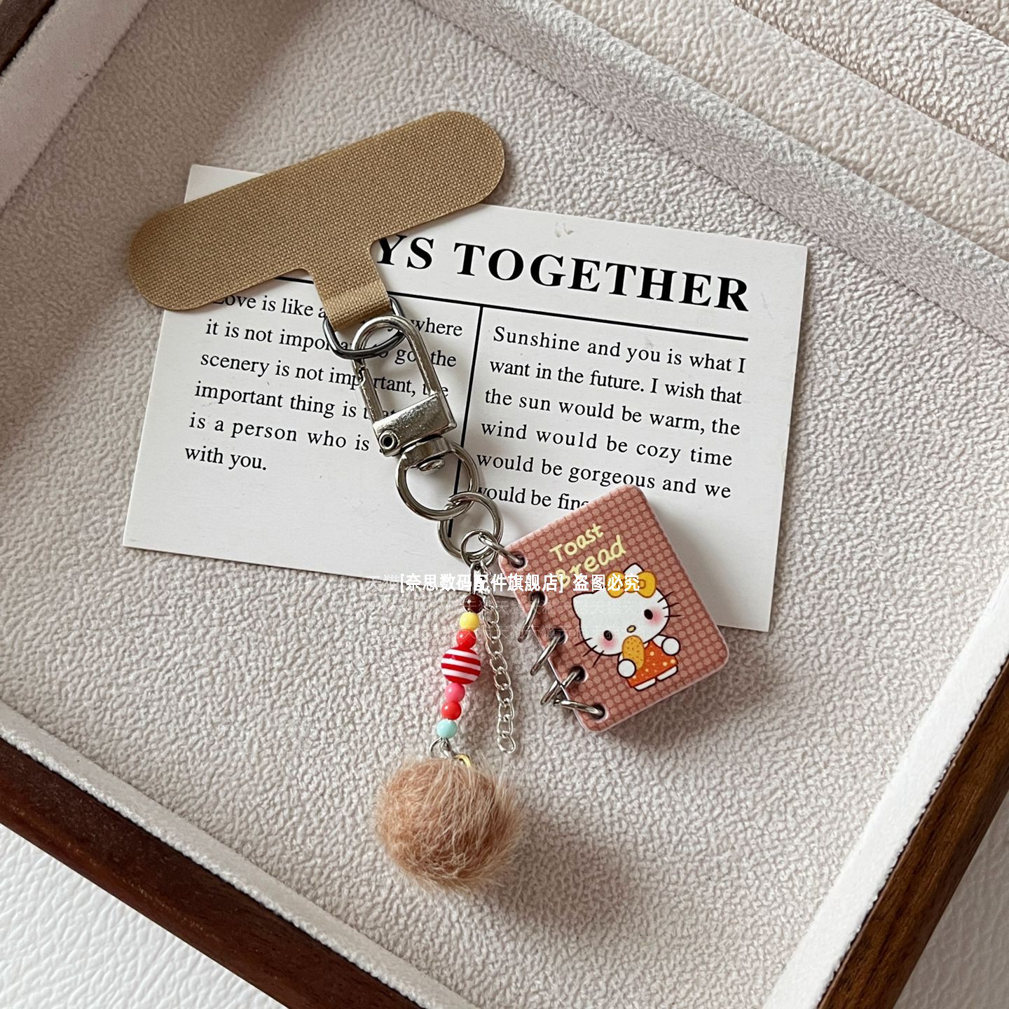 奈思小书本猫咪手机链迷你包包挂件带毛球小巧创意耳机钥匙扣u盘挂饰链条挂链短款 可爱卡通ins防丢配饰垫片壳