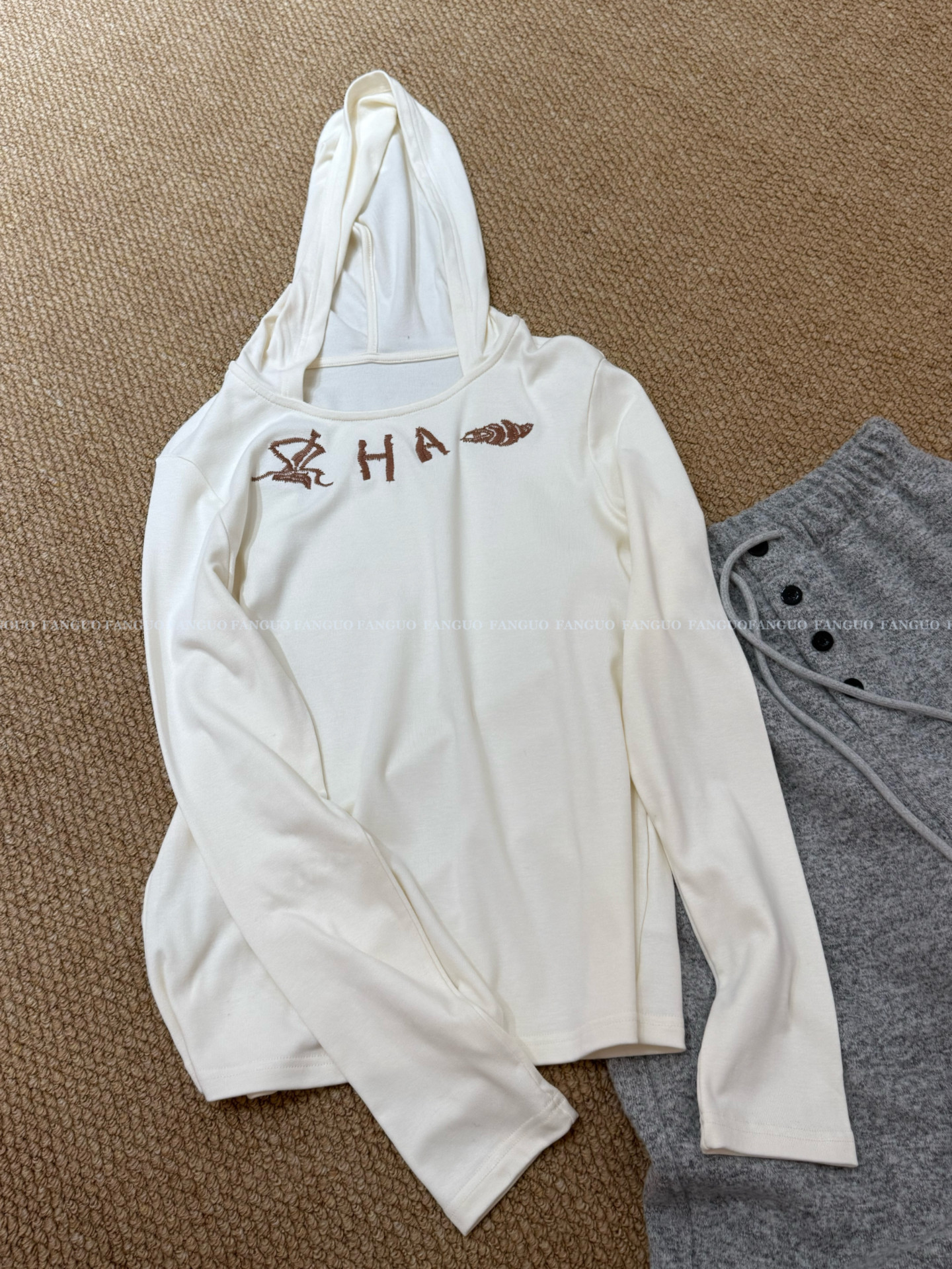 MADE 鞠婧祎 刺绣连帽长袖 叠穿内搭 设计师款 T恤 沈月同款