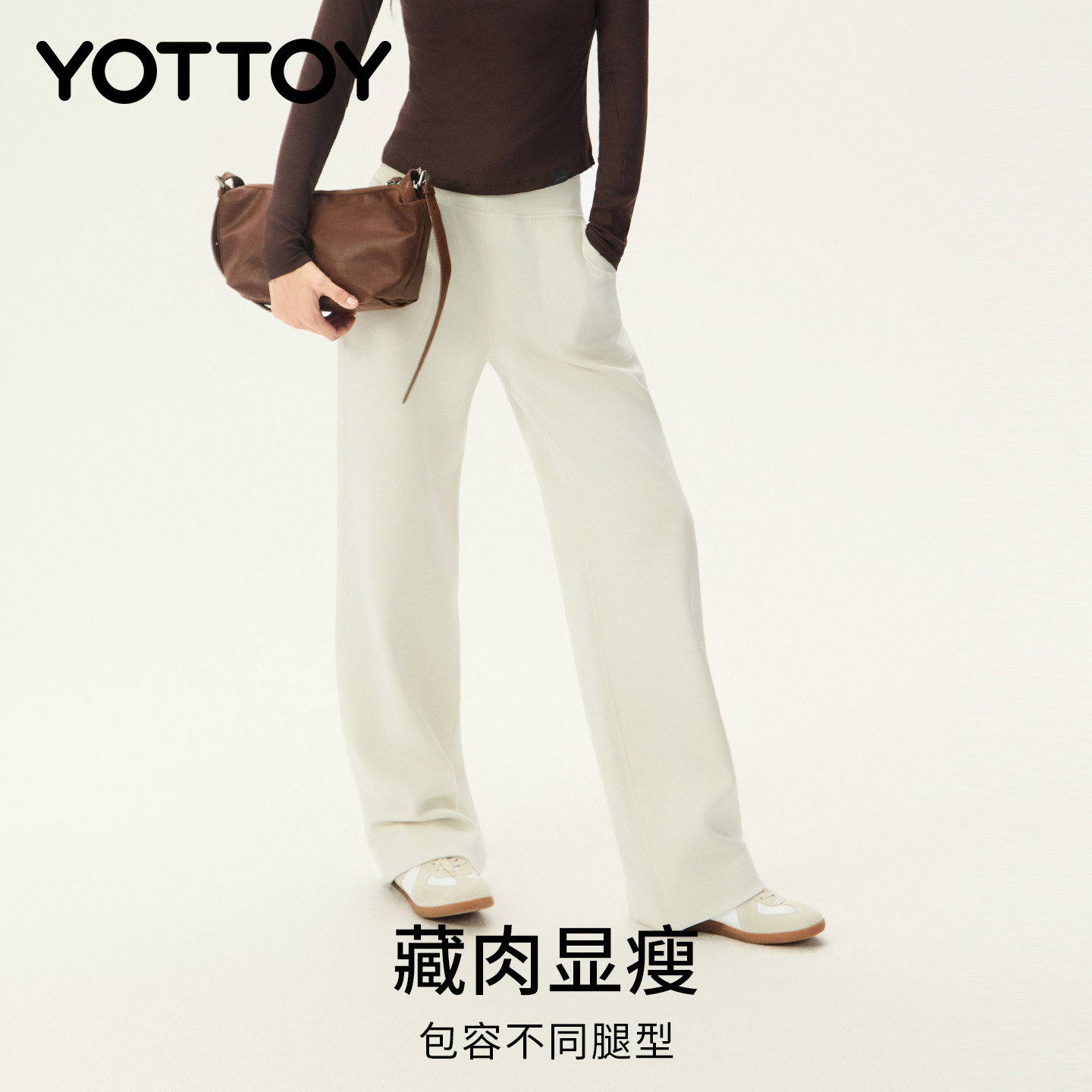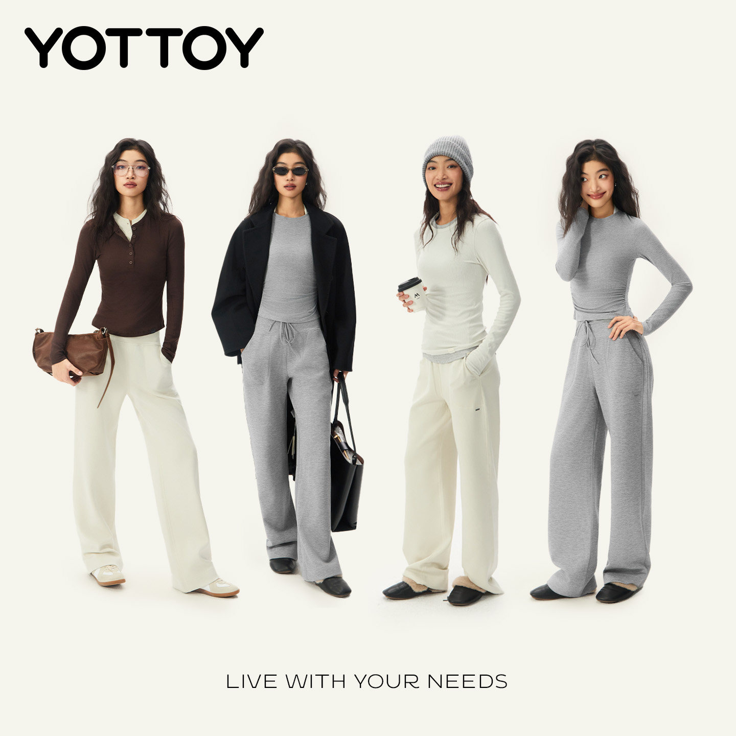 女宽松休闲裤 YOTTOY 直筒高腰瑜伽长裤 运动裤 秋冬 加绒年糕阔腿裤