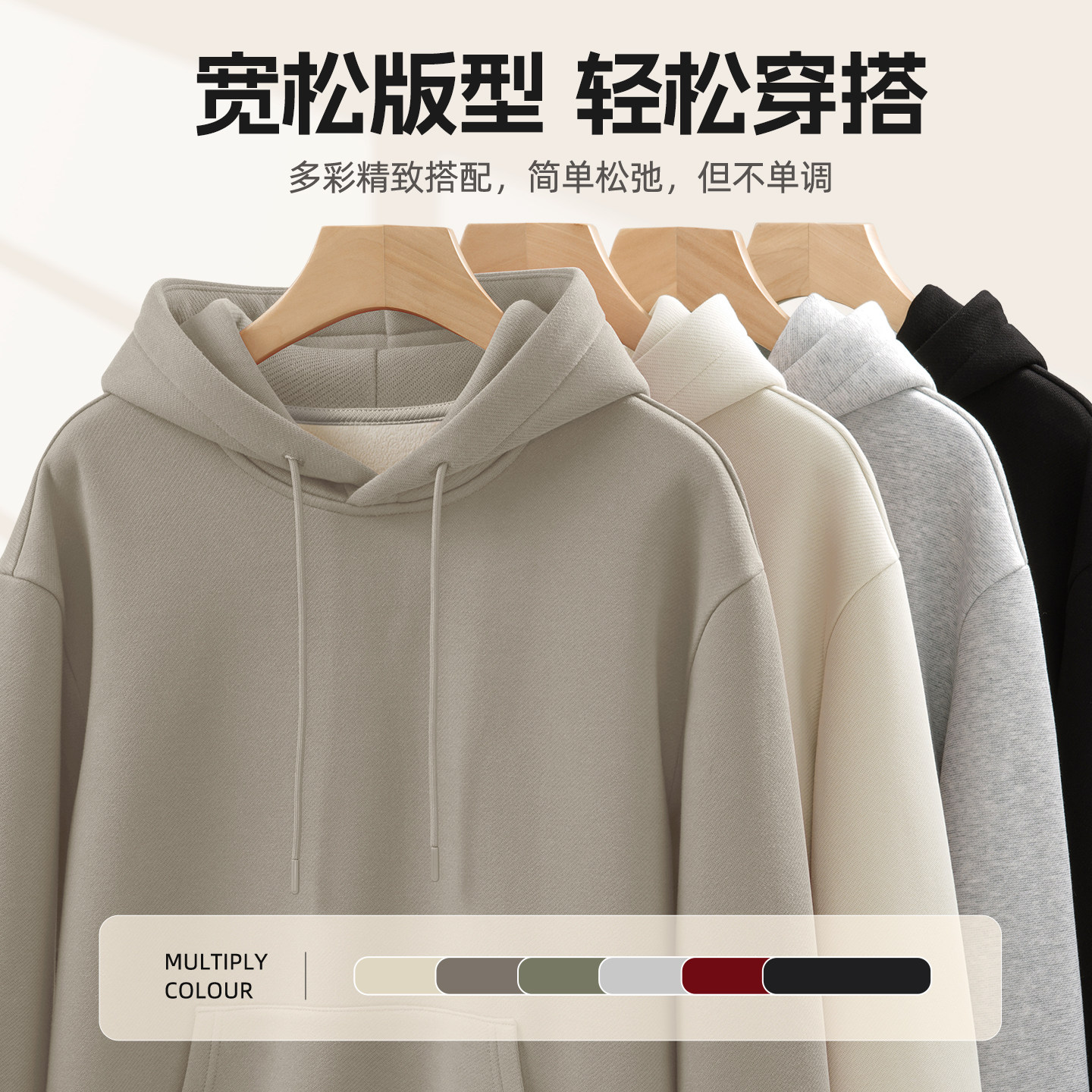 warmtrees双层错开螺纹领卫衣男2025年新款 卫衣秋冬纯色卫衣