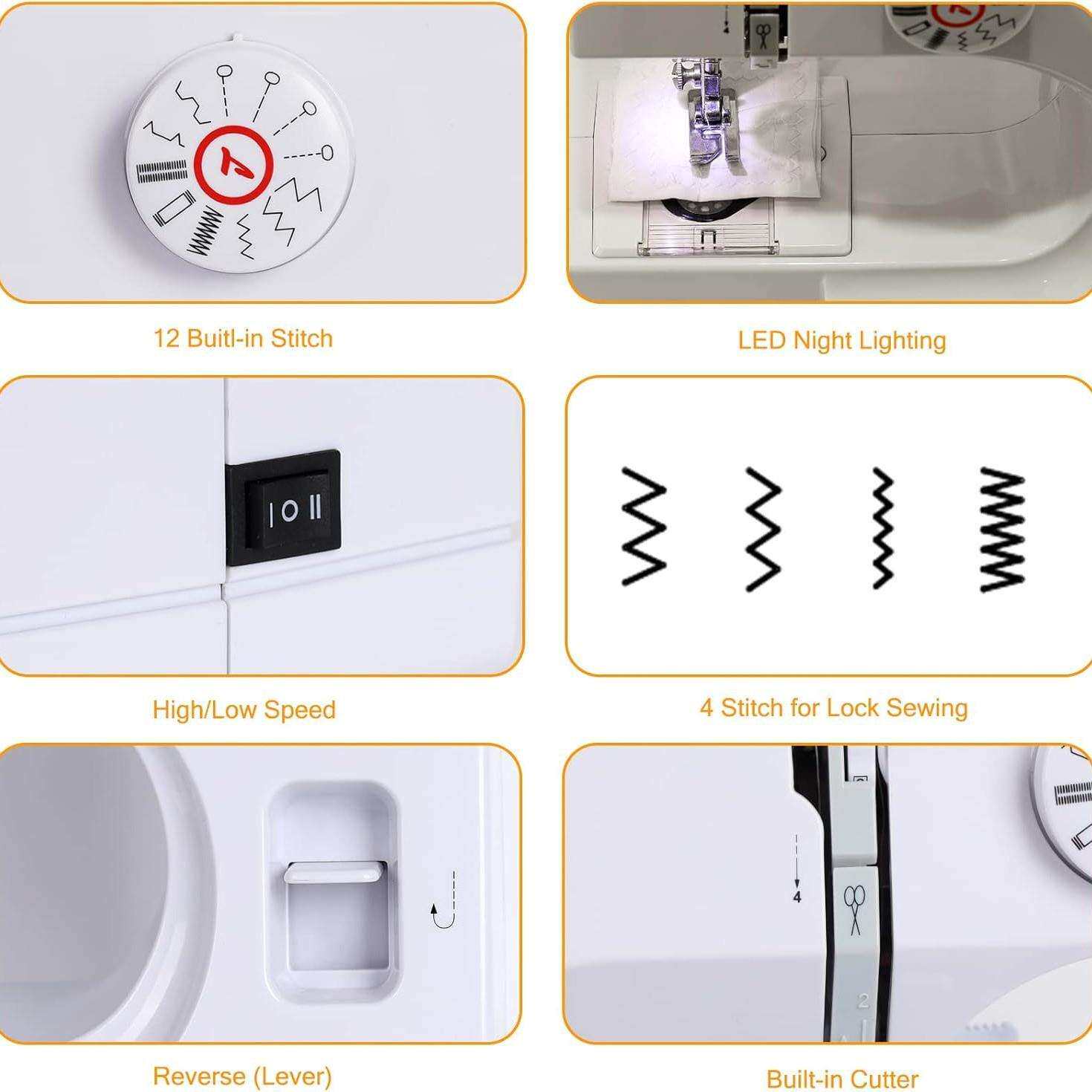 亚马逊725多功能缝纫机12种线迹家用迷你便推携式 欧规美规电动