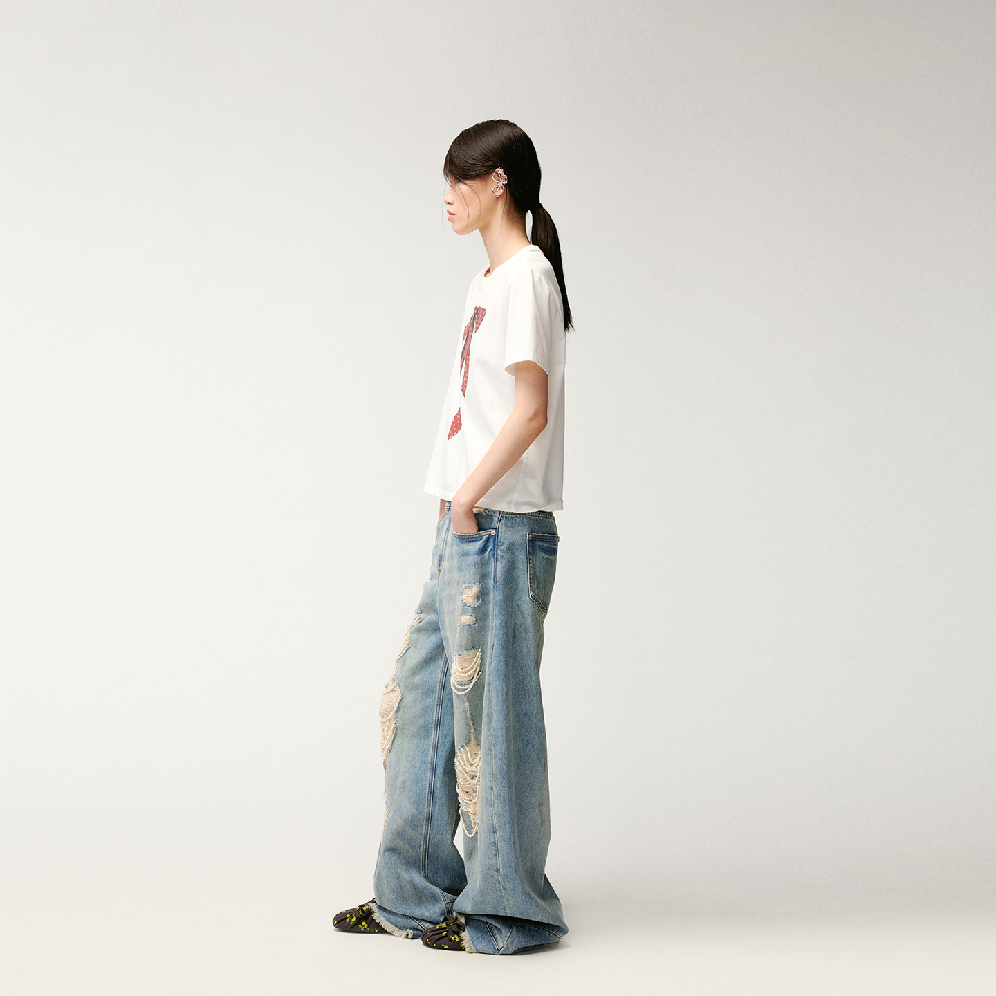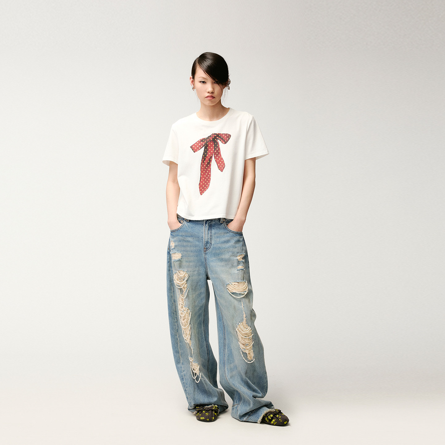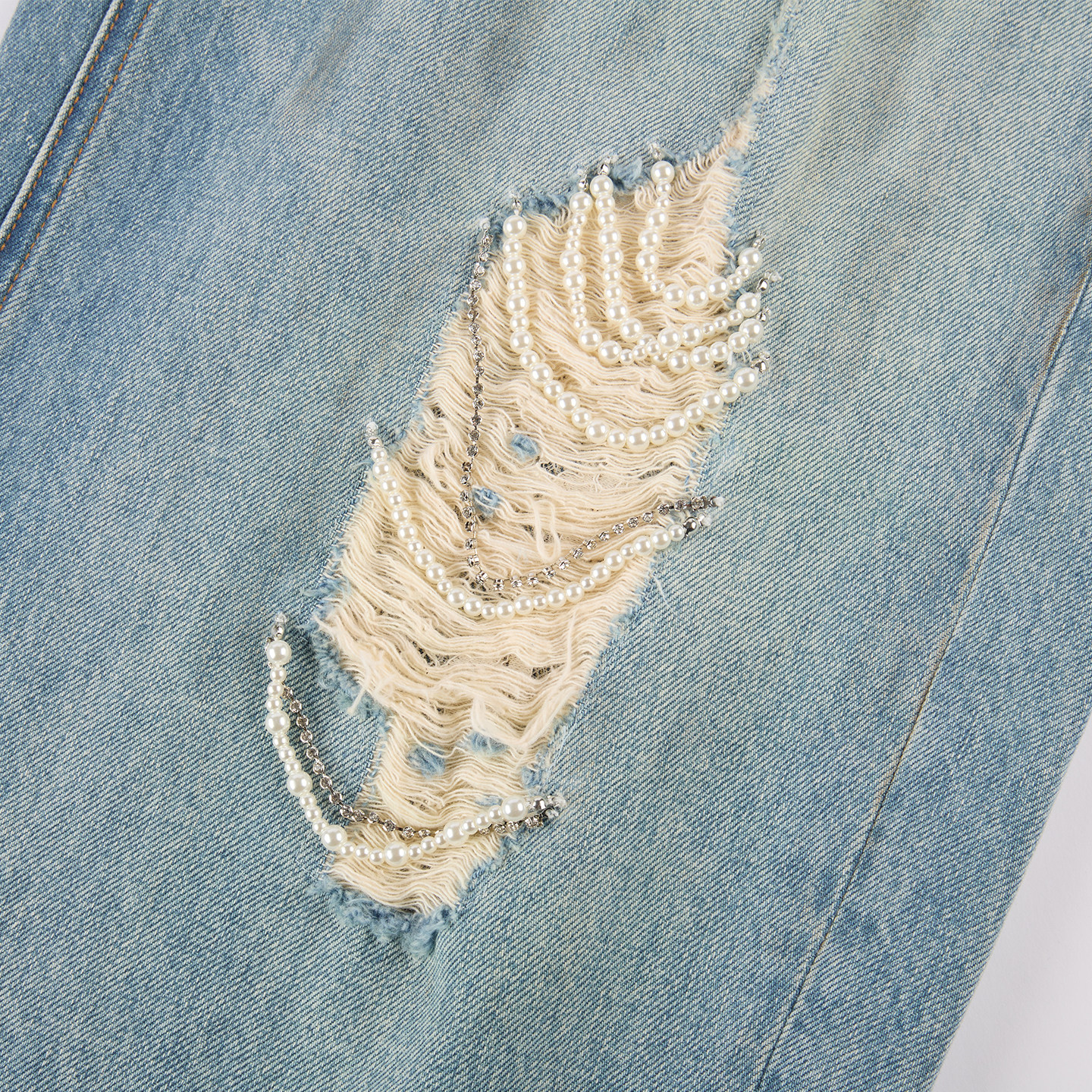 珍珠链条破洞牛仔裤 新款 乌丫2026夏季 UOOYAA