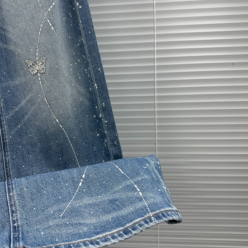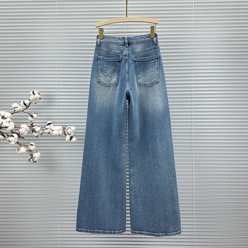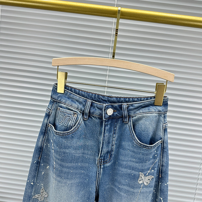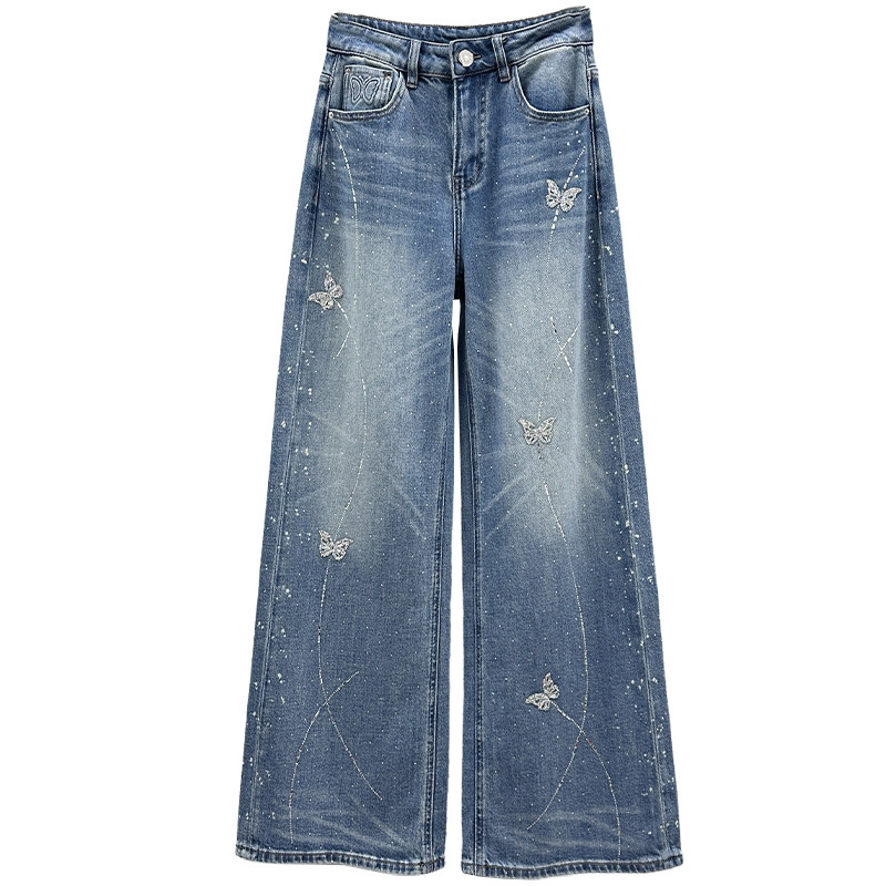 高腰宽松百搭ins蝴蝶烫钻阔腿长裤 春装 女潮2026年新款 拖地牛仔裤